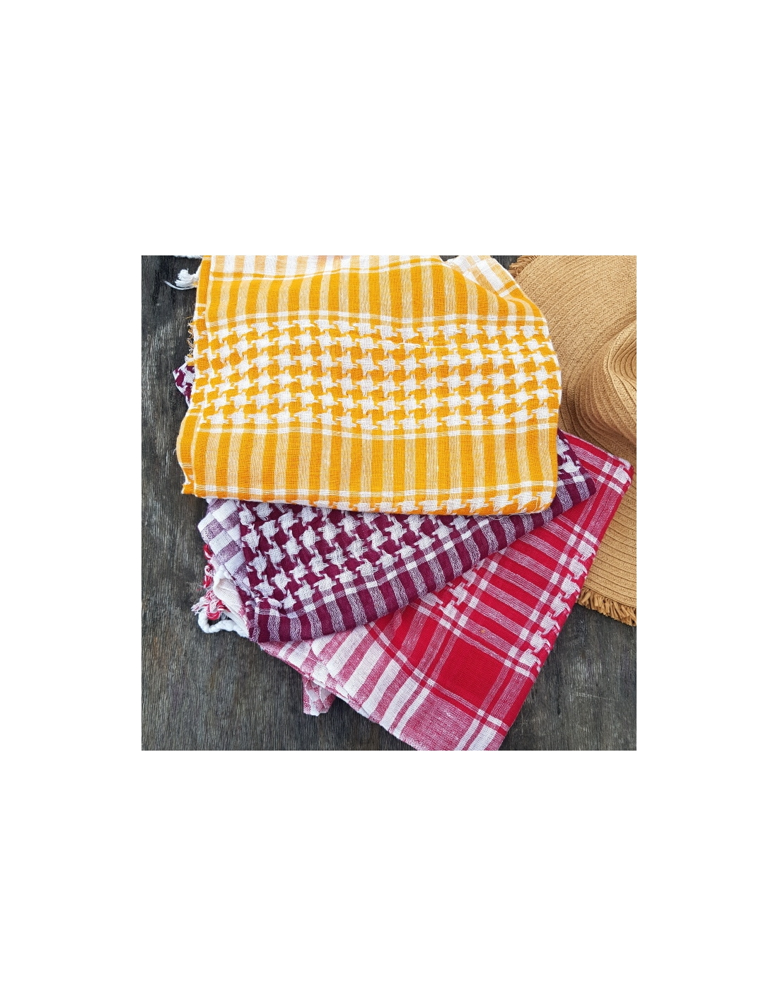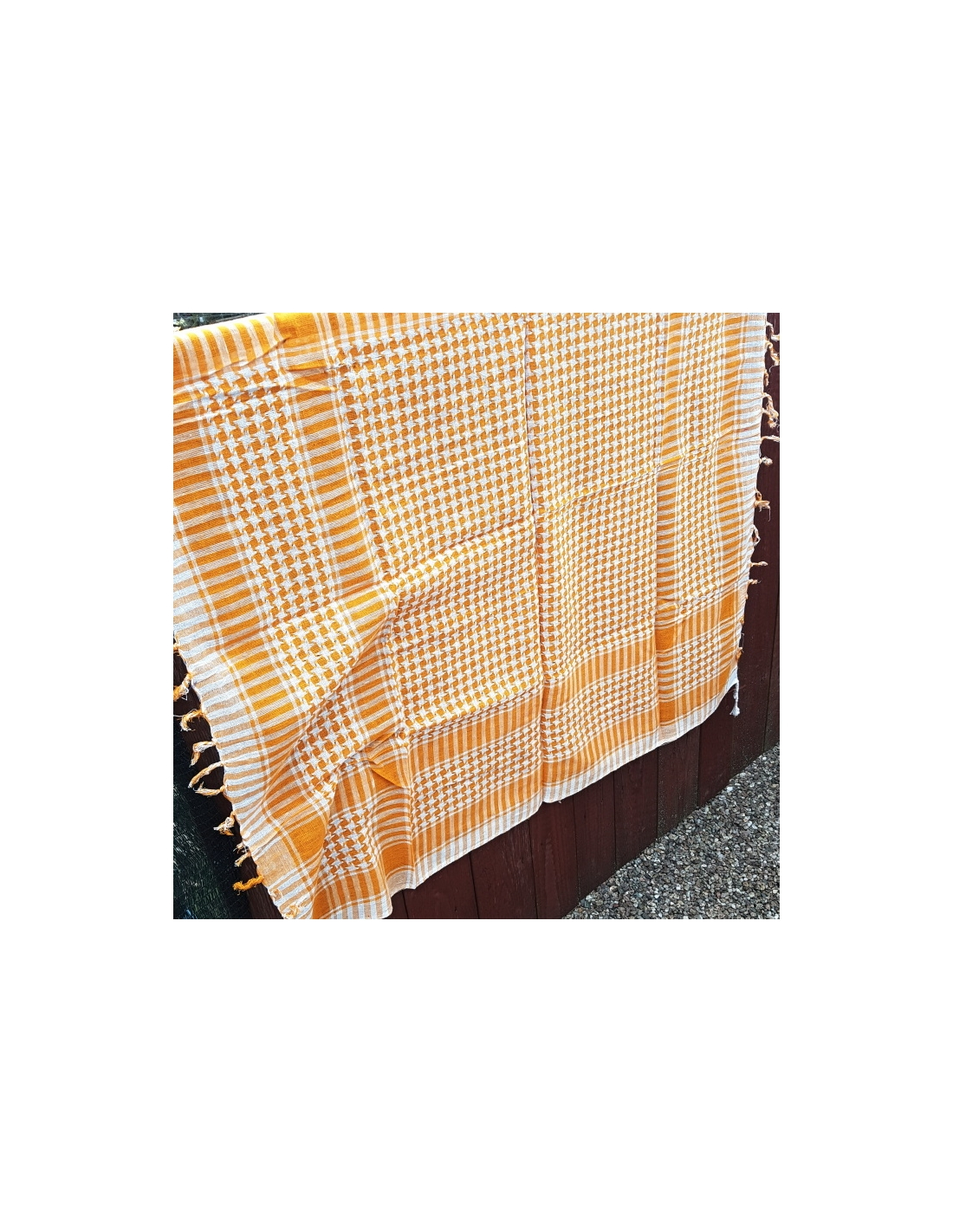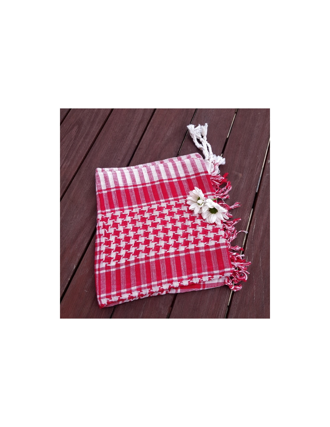 Tkaný šátek z bavlny s bílou osnovou a barevně vytkaným vzorem. Pro muže i ženy.