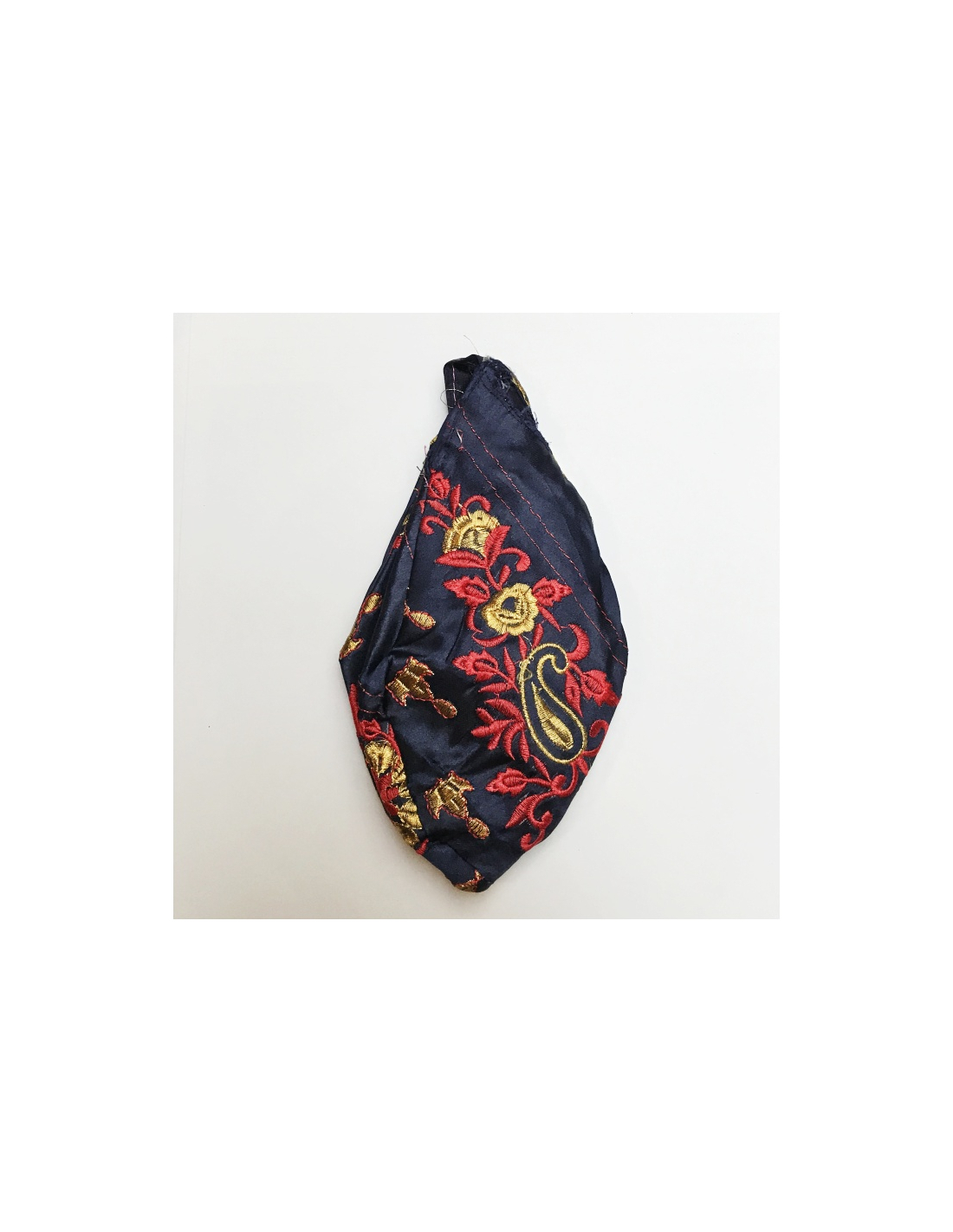 Bavlněný japa pytlík na růženec v modré barvě se zlatou výšivkou.