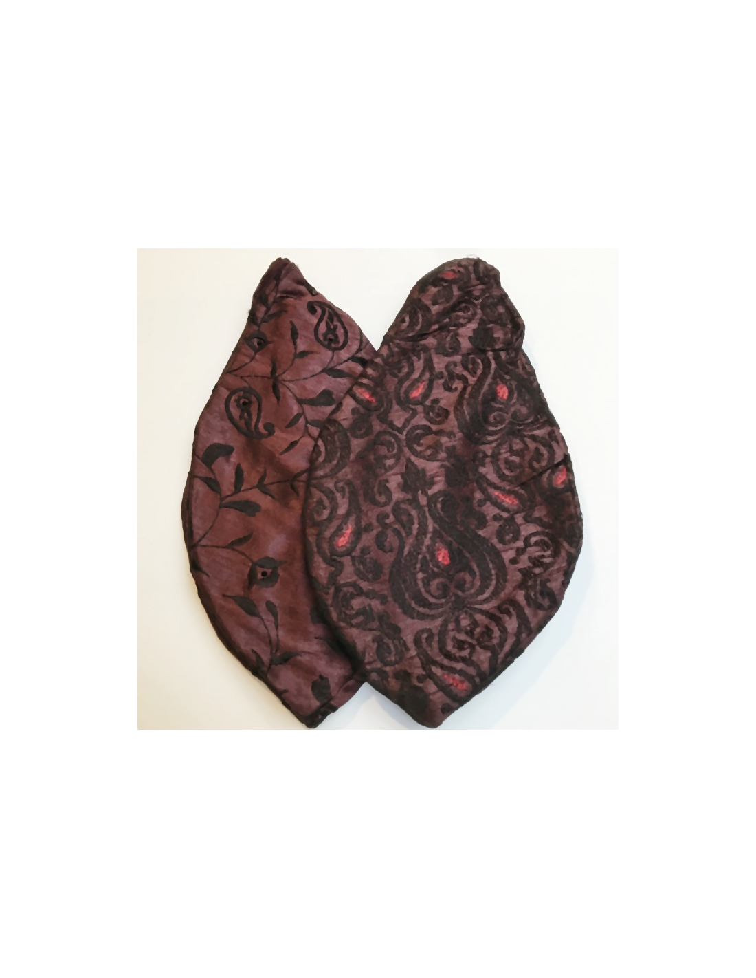 Bavlněný vyšívaný japa pytlík z tmavé brokátové látky k výběru dle vzoru a čísla 01 až 02 dle obrázku zleva doprava.