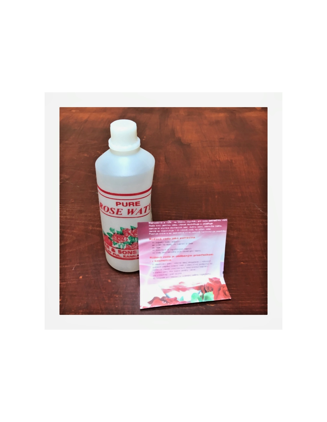 Růžová voda. Okvětní lístky, z nichž je voda vyrobena, byly zpracovány nejmodernější technologií a jejich sklizeň proběhla ručně. Růžová voda je vynikajícím přípravkem na vyčištění či pouhé osvěžení pleti.