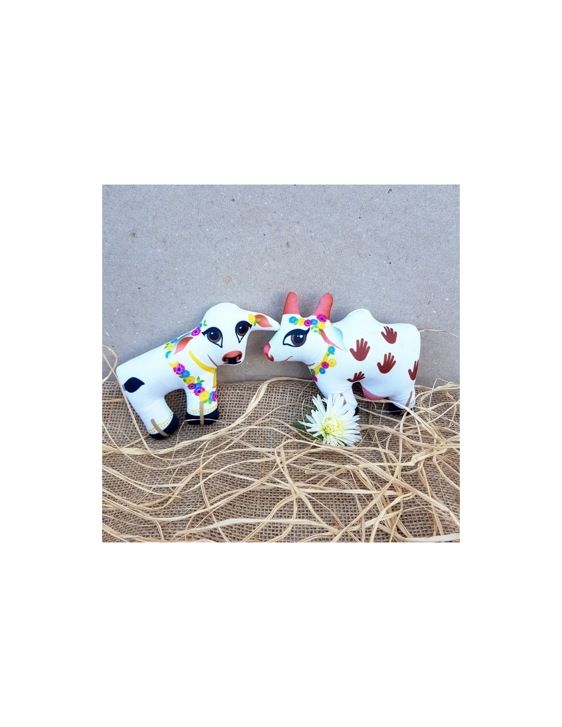 Textilní panenky Kravičky, 2 kusy. Výplň duté vlákno. Vhodné pro děti, nezávadné.