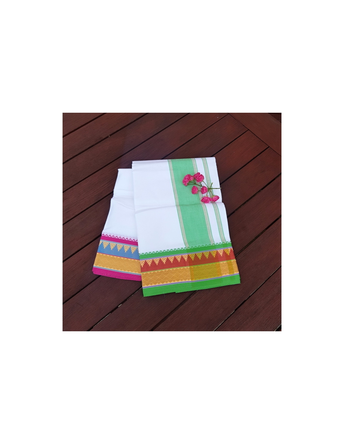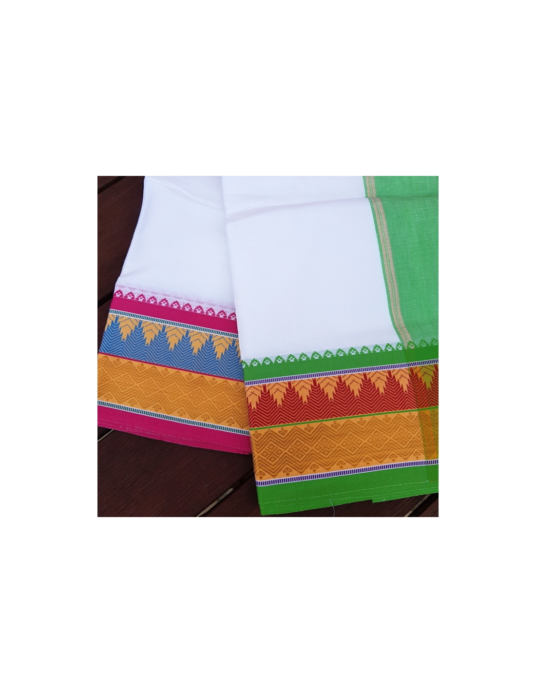 Bílé dhotí s nádherným okrajem.