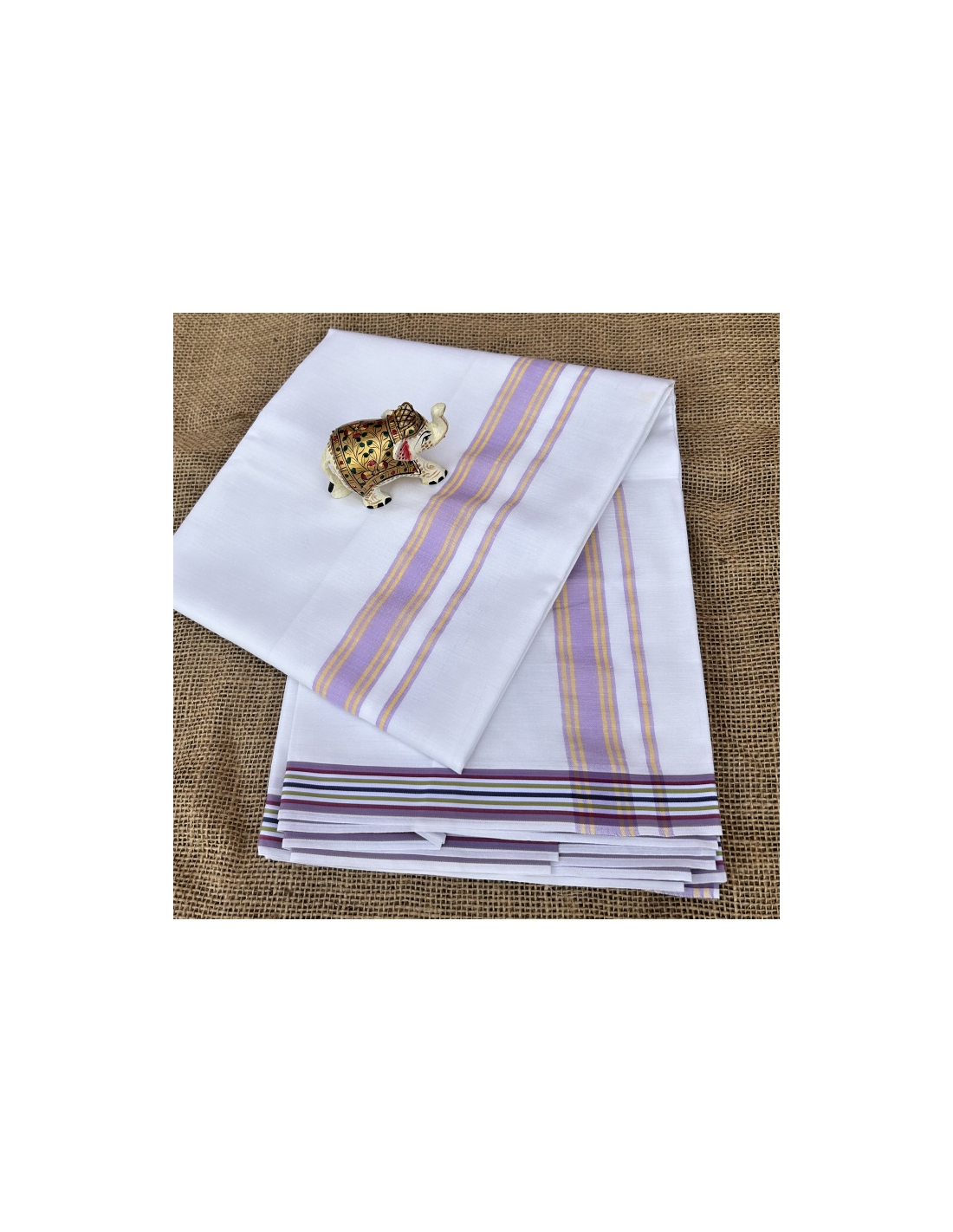 Bílé dhotí se širším pruhem a proužkovanou bordurou. K výběru dle barvy pruhu a fota.