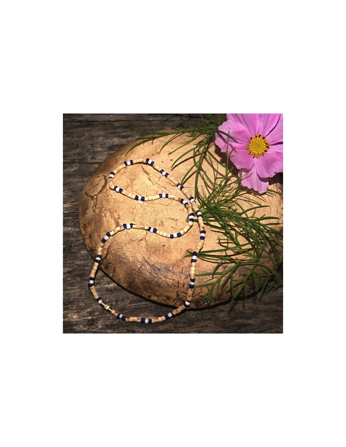 Dvouřadá kantimála s černými korálky a perlami vyrobená z posvátného keříku tulasí. Ochraňuje.