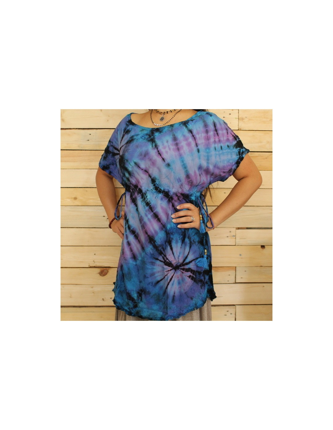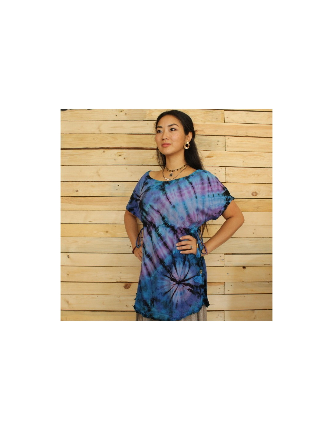 Lehká batikovaná halenka, v pase na zavázání. Můžete nosit jako halenku nebo v létě jako šaty. Je vzdušná a velmi příjemná na nošení.