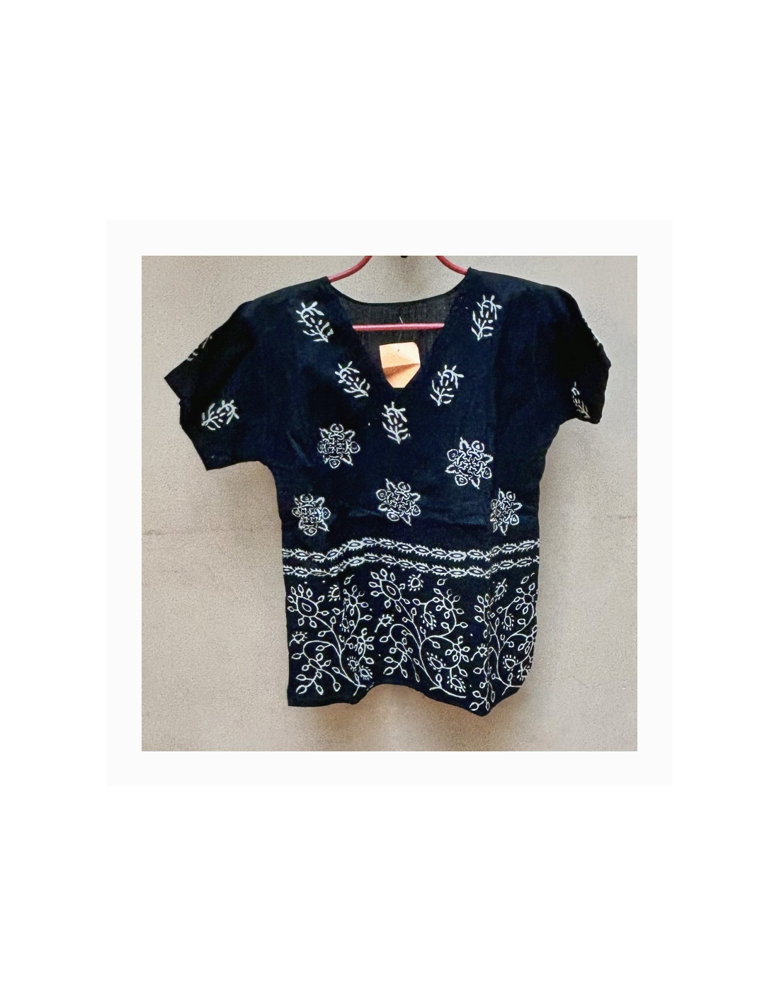 Lehká bavlněná halenka černá s bílým voskovým vzorem. K výběru dle fota a čísel 01 až 03.