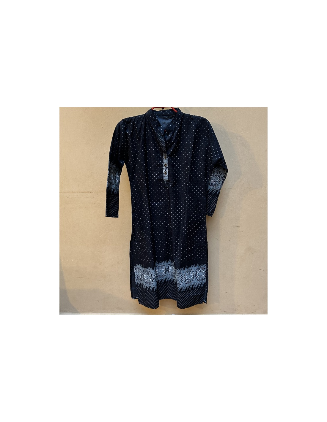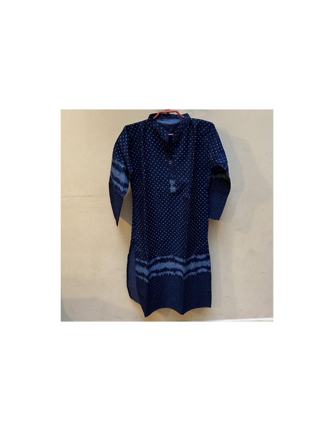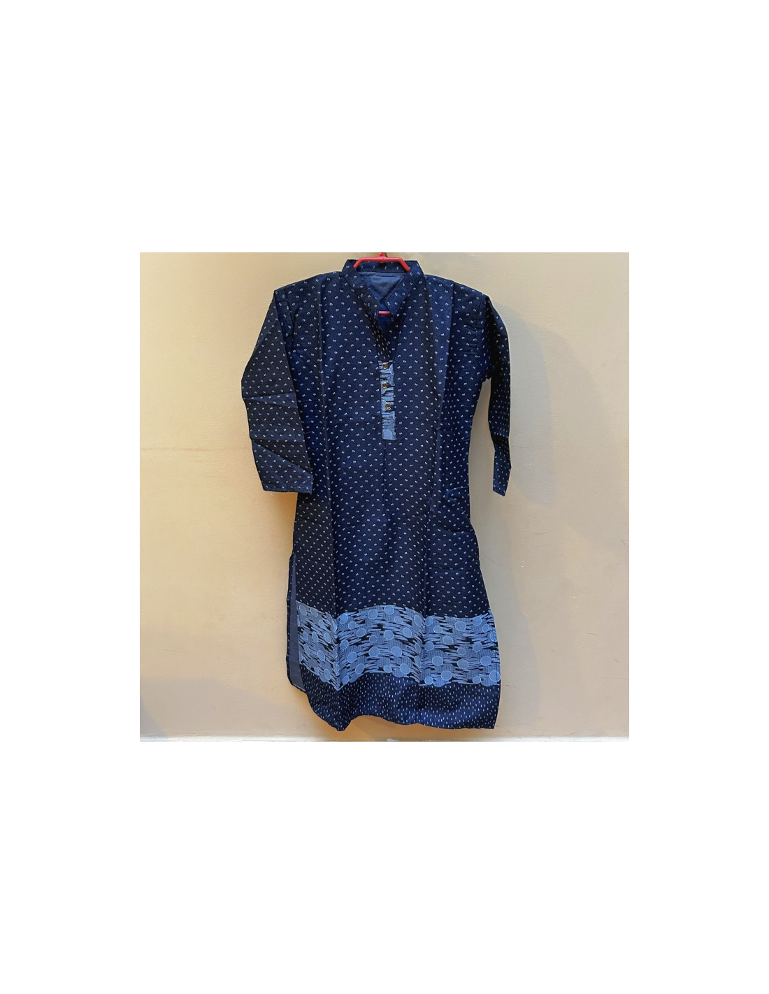 Příjemná teplejší kurta tmavě modré barvy s bílým drobným vzorem. K výběru dle fota a kombinací 01 - 03 viz v Rozměry.