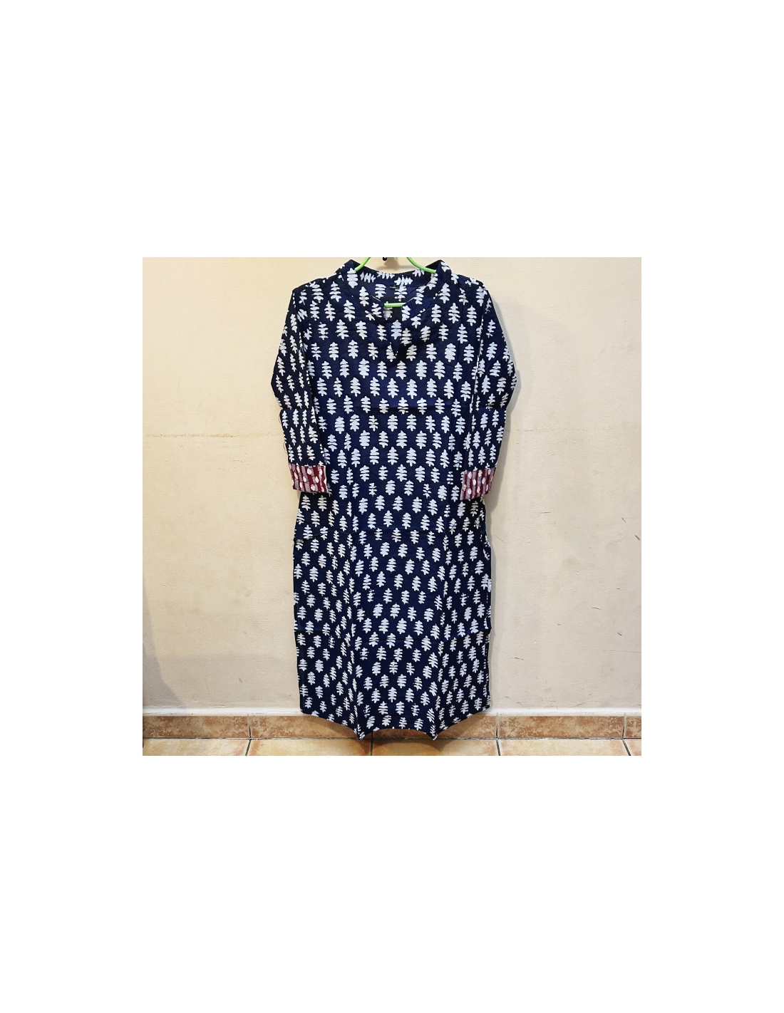 Dámská kurta - halenka, velmi slušivý střih, v pase projmutá, 3/4 rukáv s bordurou. Délka 110 cm. Na každodenní nošení.