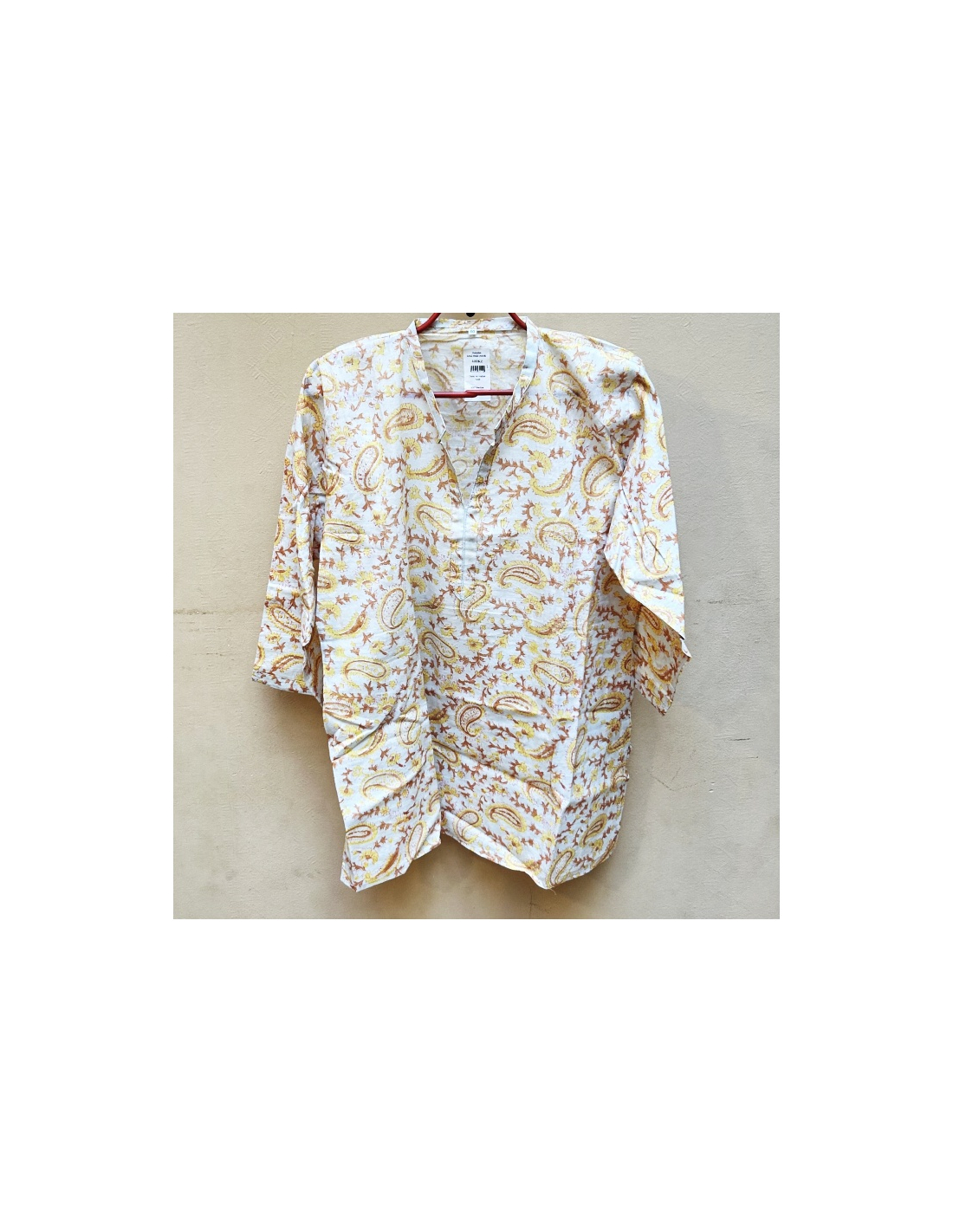 Kratší kurta - halenka se stojáčkem a rovným výstřihem, 3/4 rukávy, slušivý střih. Příjemná měkká bavlna. Na každodenní nošení.