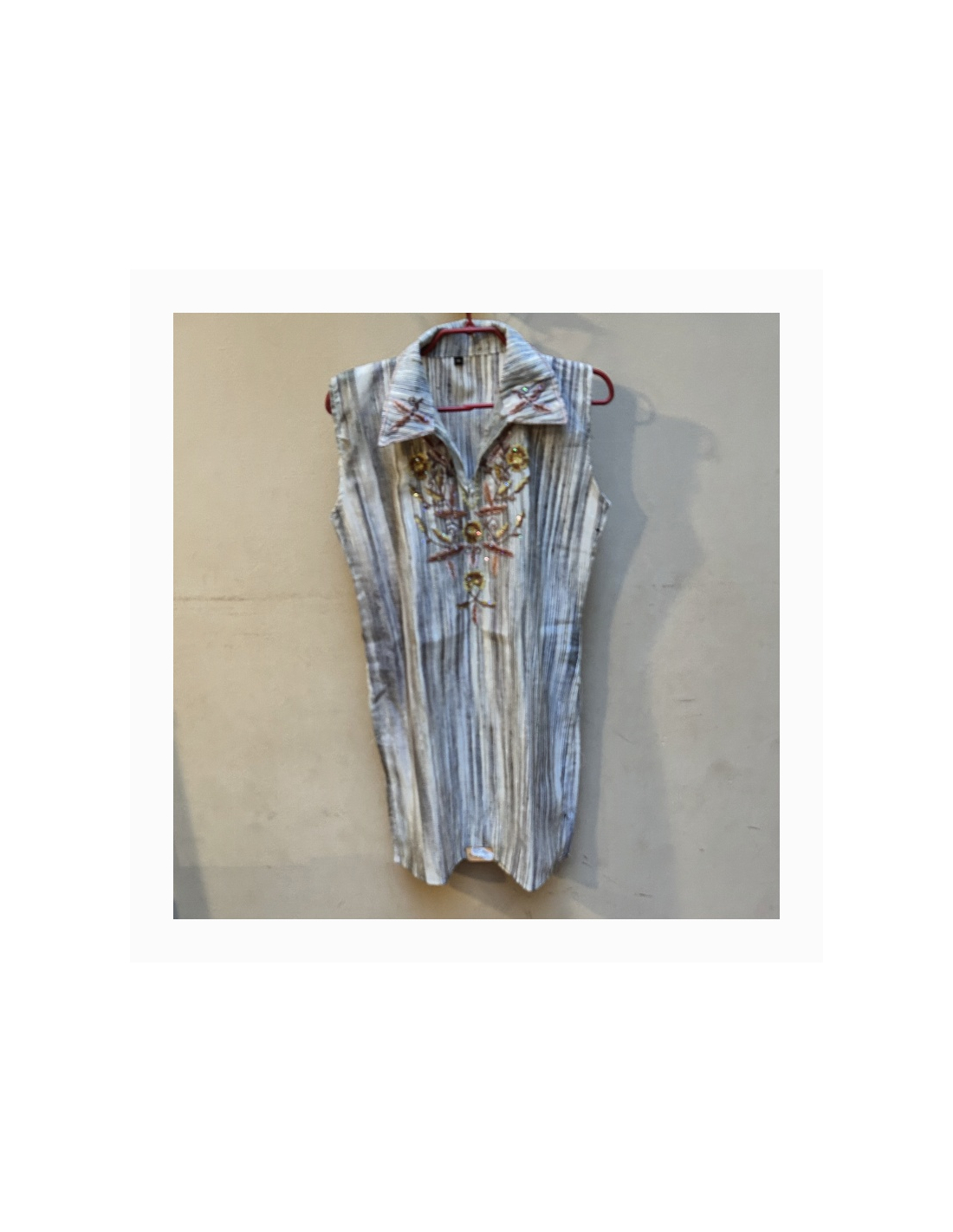 Vyšívaná halenka s límečkem a bez rukávů. Pevný bavlněný materiál.