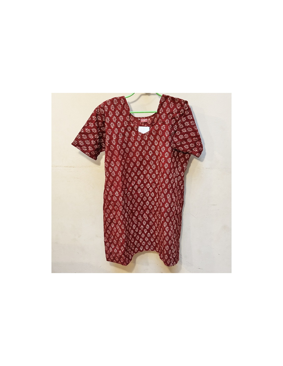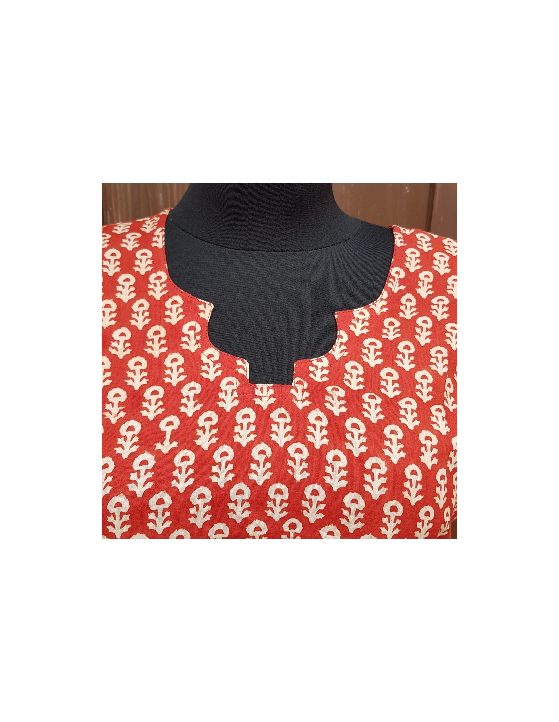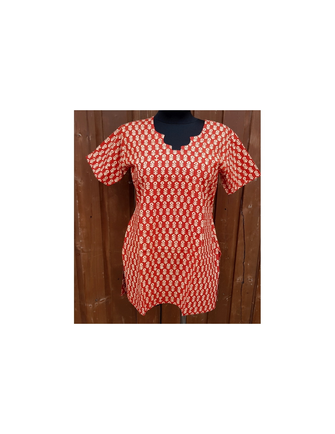 Dámská kurta cihlové barvy z kvalitní bavlny s originálním výstřihem. Velikost L.