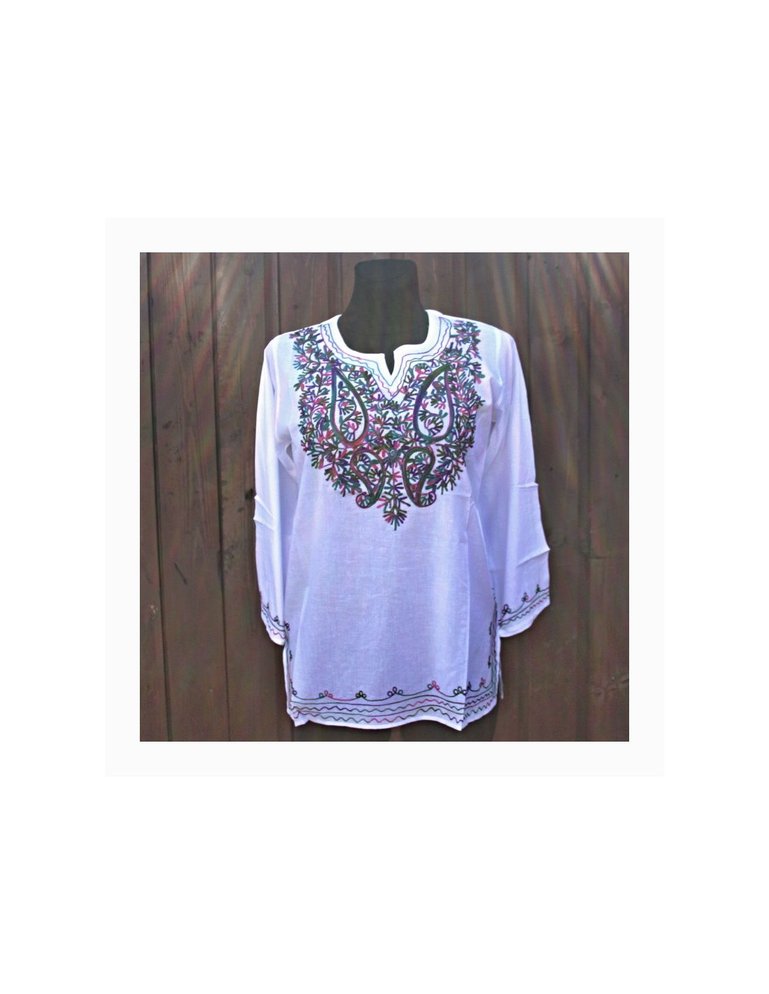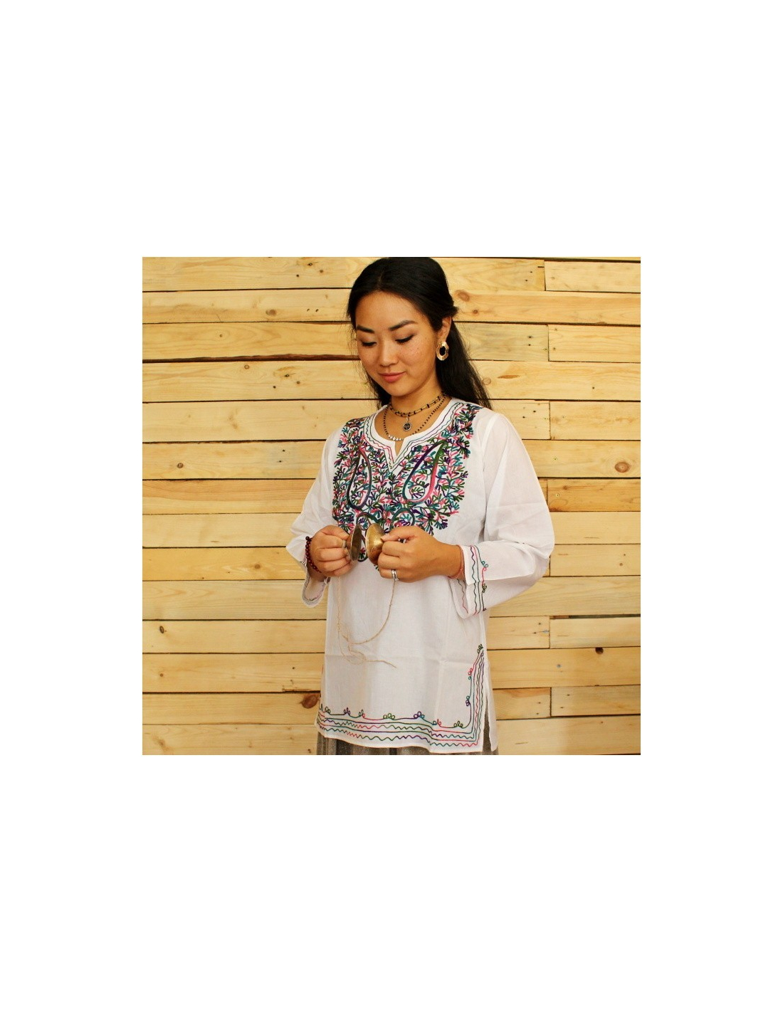Dámská kurta bílá vyšívaná barevně, dl. rukáv