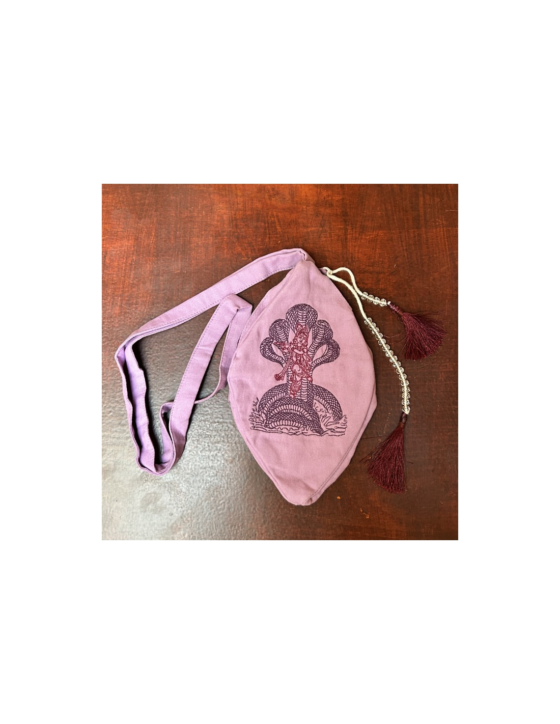 Japa pytlík vyšívaný lila Krišna s Kaliyou, vel. M, L