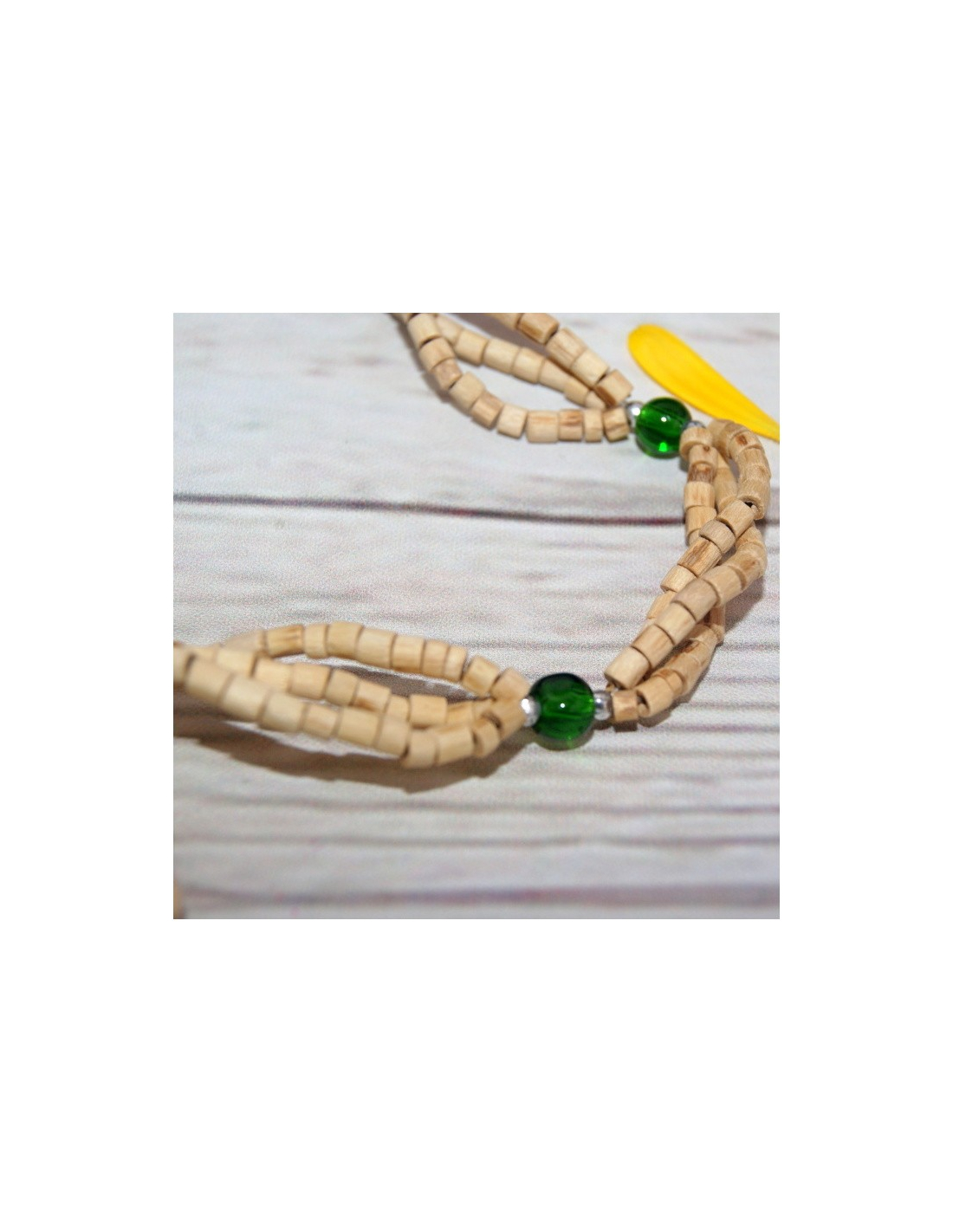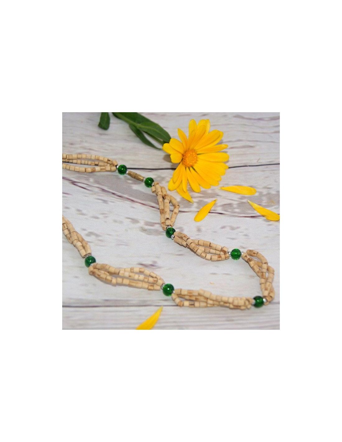 Jednořadá kantimála se zelenými korálky na třech řadách tulasí. Ochraňuje.
