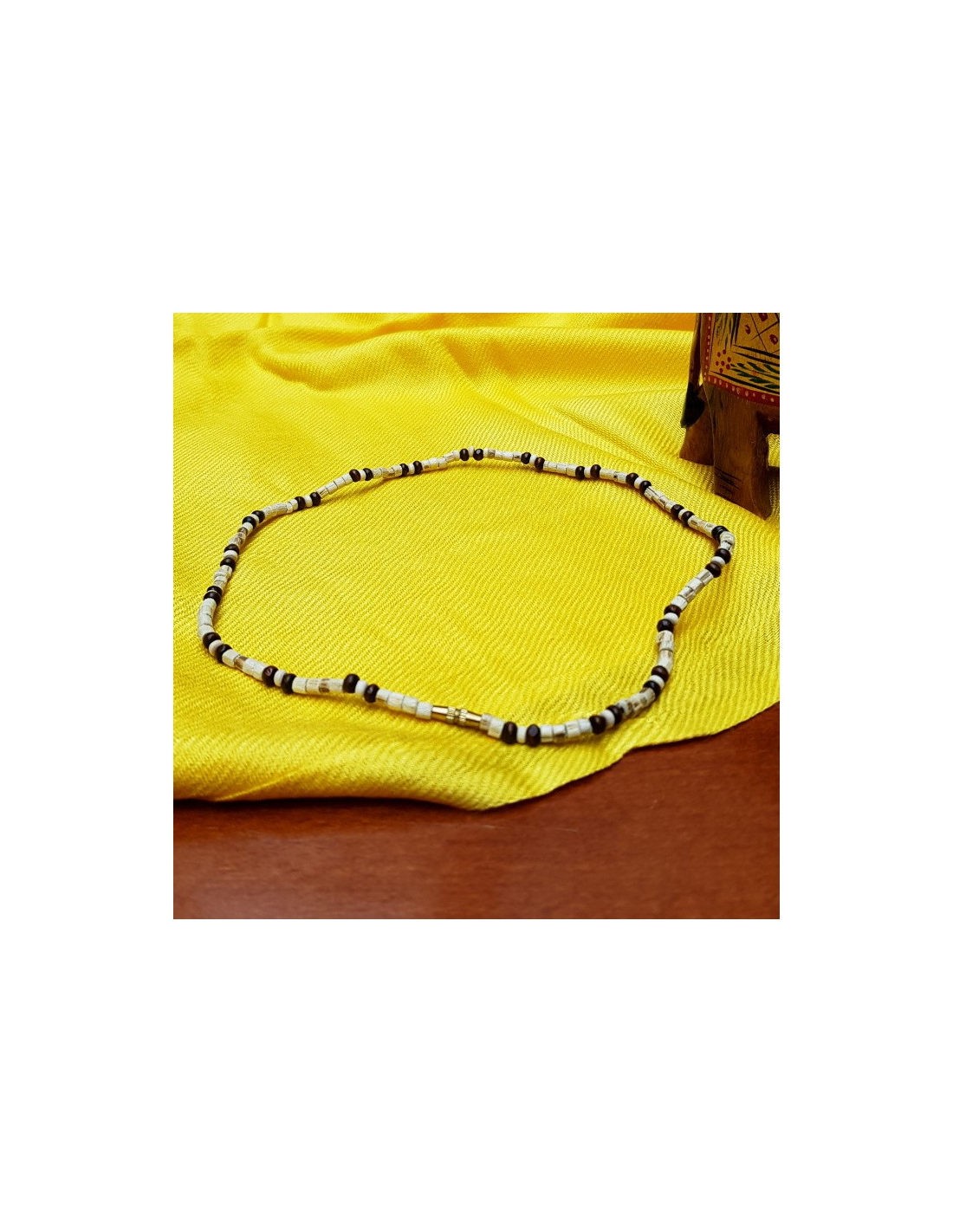 Jednořadá kantimála vyrobena z posvátného keříku tulasí. Ochraňuje. S dřevěnými korálky.
