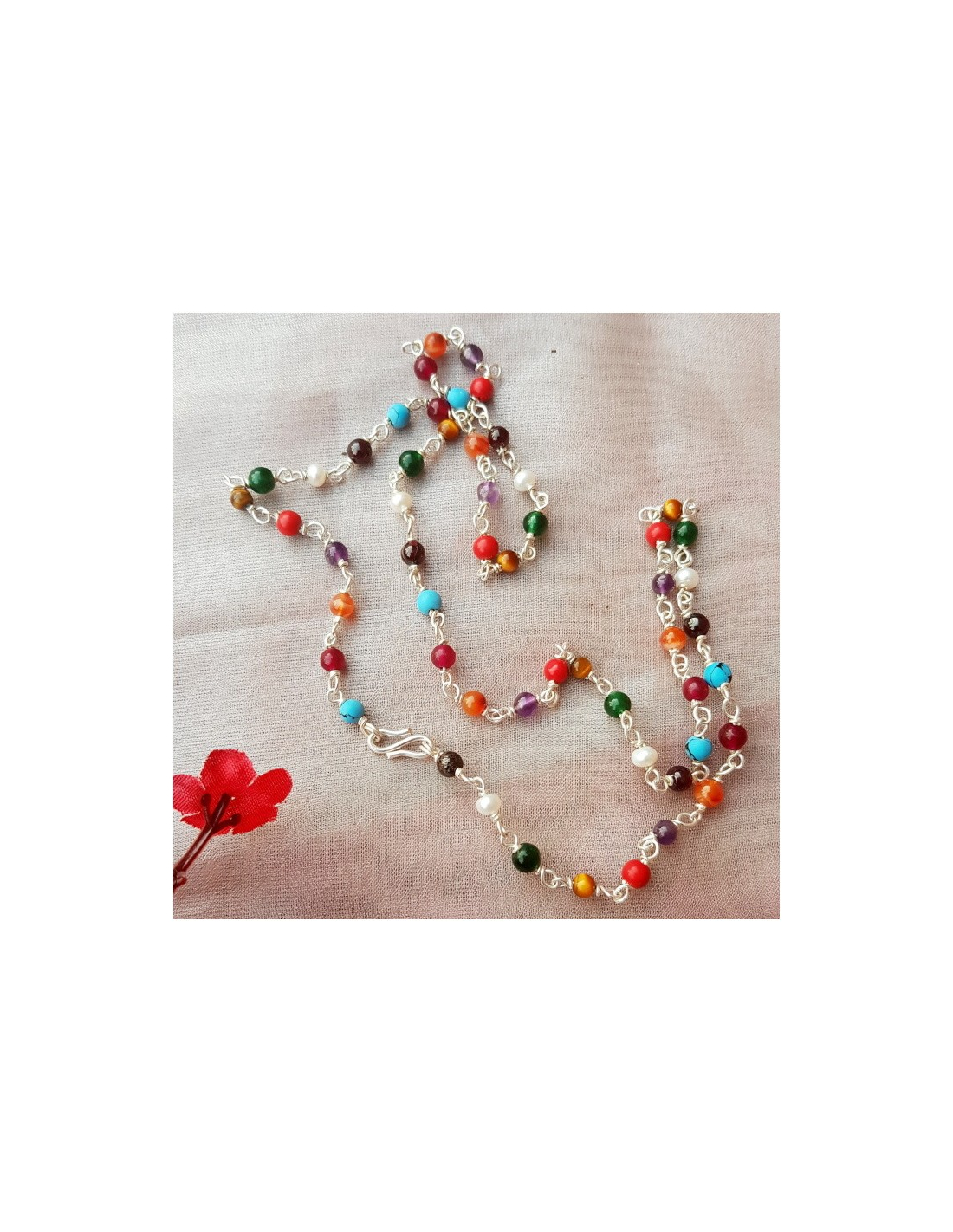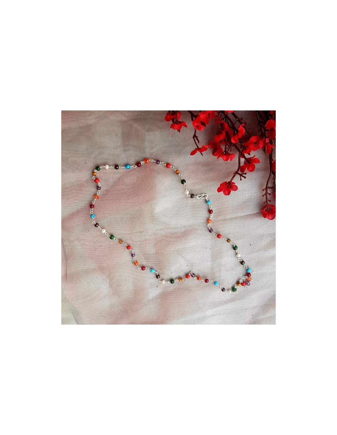 Náhrdelník s pravým stříbrem a kameny. Velmi příznivě působí na naše tělo a mysl.