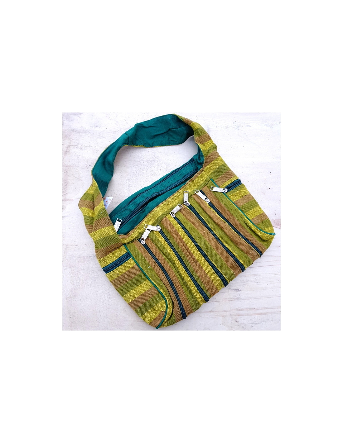 Příjemná textilní taštička přes rameno. Je zdobena falešnými kapsičkami ze zipů, ale má i spoustu kapes, boční kapsu na zip, vnitřní kapsy.