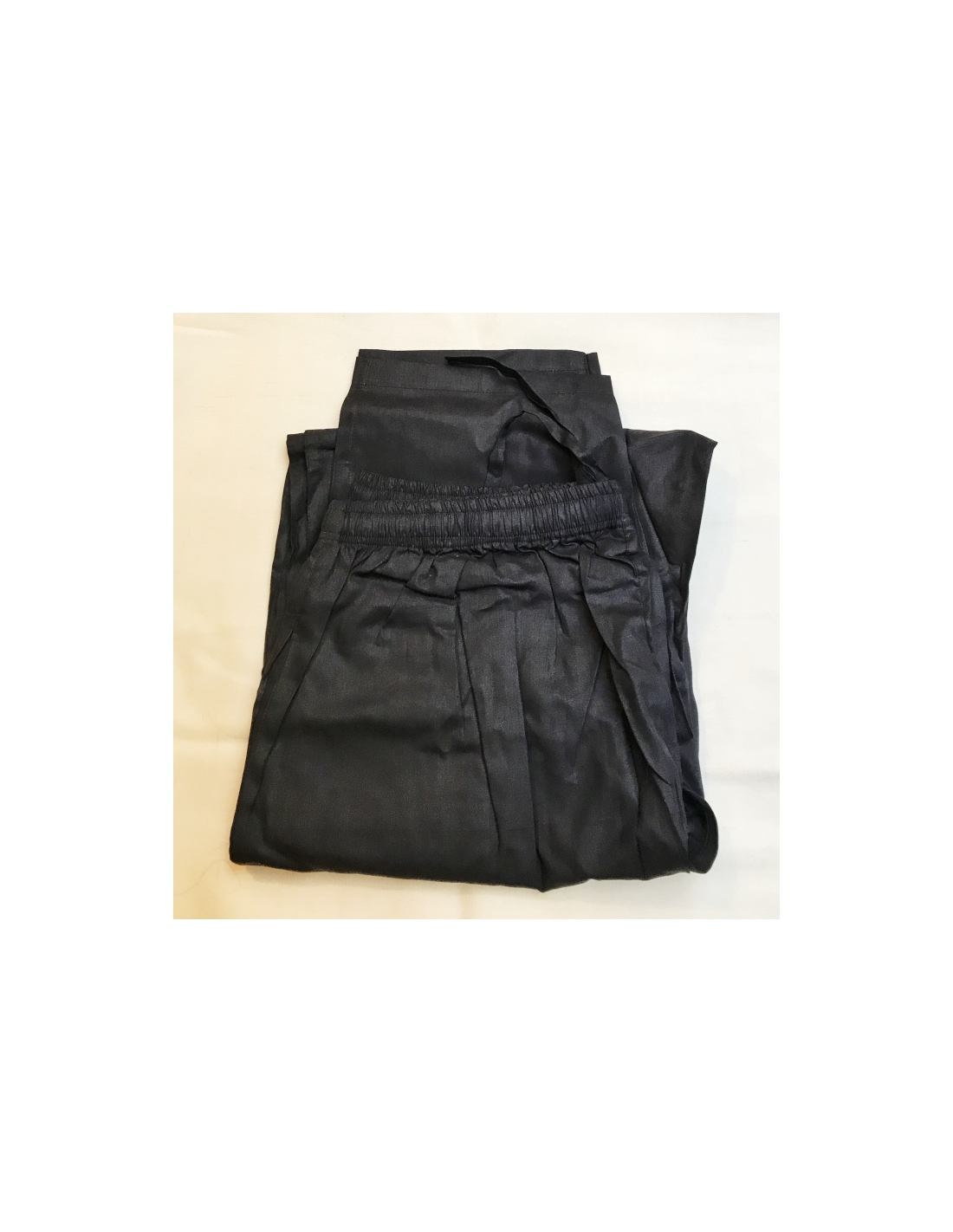 Příjemné pánské kalhoty s elastickým pasem, které se také nazývají bhakta kalhoty. Postranní všité kapsy, rozparek na zip.
