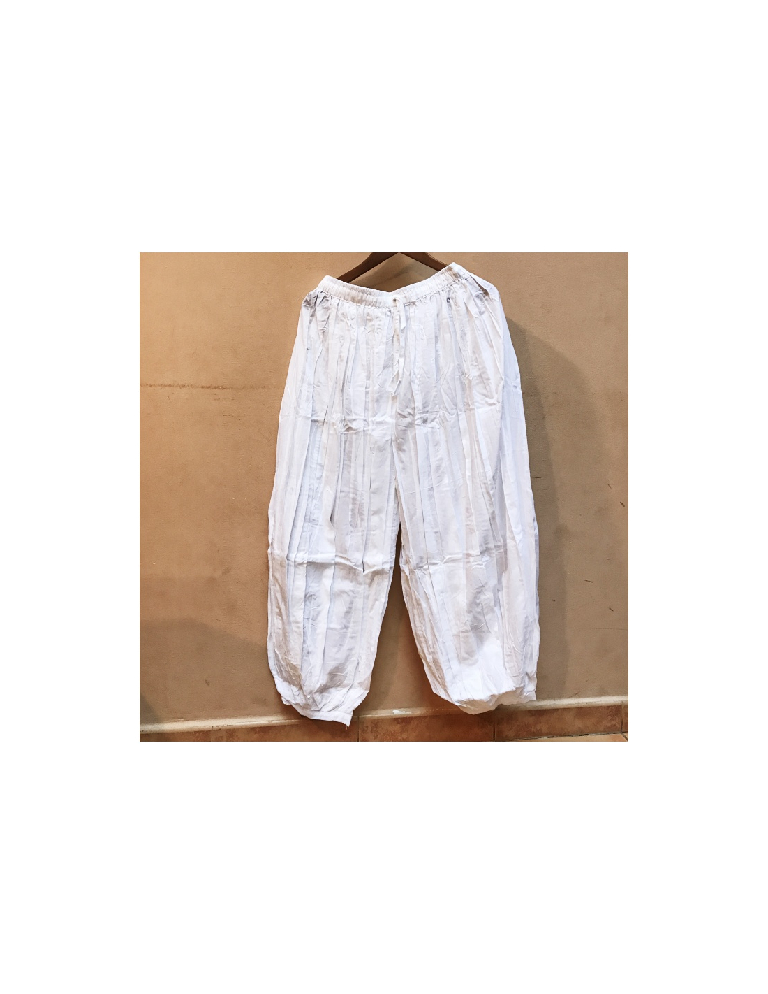 Pohodlné široké nařasené kalhoty. V pase na gumu. Velikosti M, L a XL.
