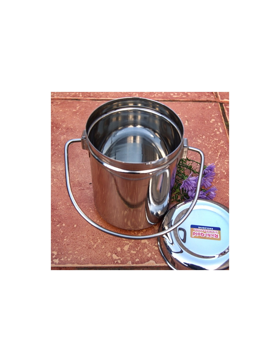 Kamandala - nerezová nádoba s víčkem. Vhodná na čaje, vodu a jídlo. Má víčko proti hmyzu a praktické držátko na přenášení.