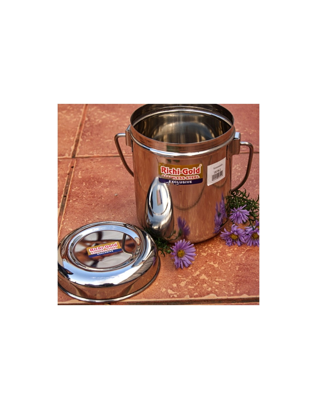 Kamandala - nerezová nádoba s víčkem. Vhodná na čaje, vodu a jídlo. Má víčko proti hmyzu a praktické držátko na přenášení.