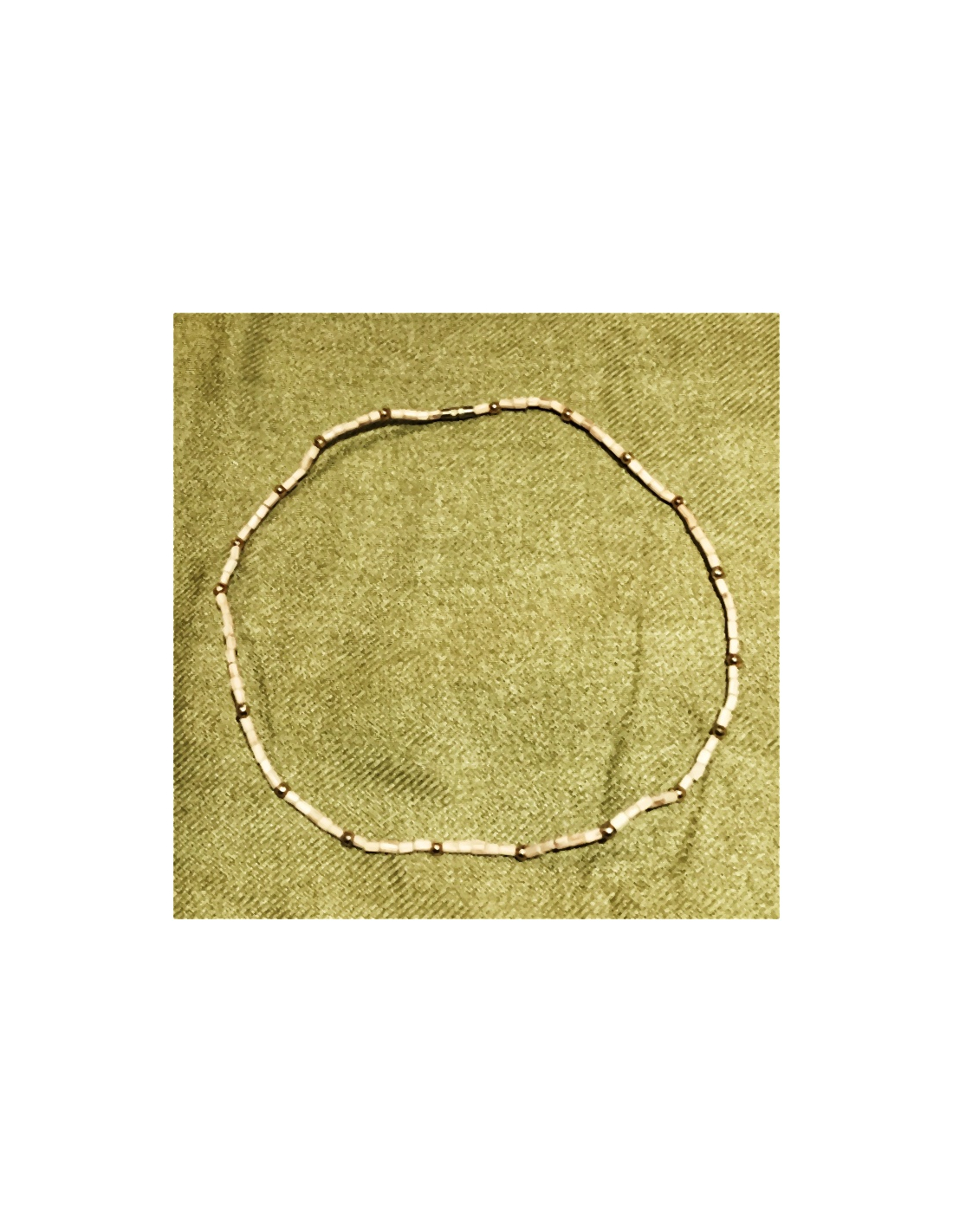 Jednořadá kantimála z tulasí zdobená korálky zlaté barvy.