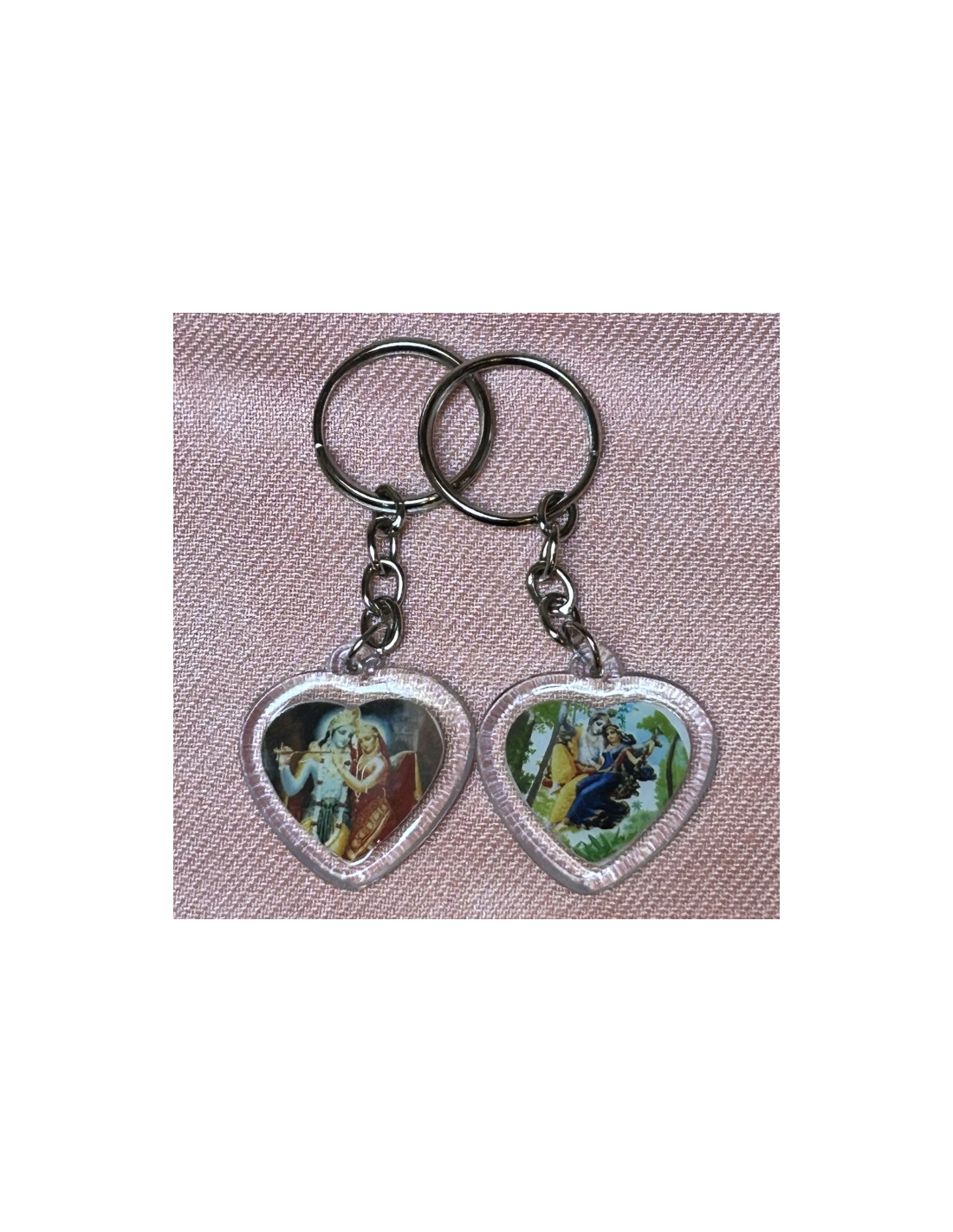Klíčenka z plastu se oboustranně zataveným barevným tematickým obrázkem jako Krišna v dětství, Goura Nitai, Nrsimha, Jagannáth.