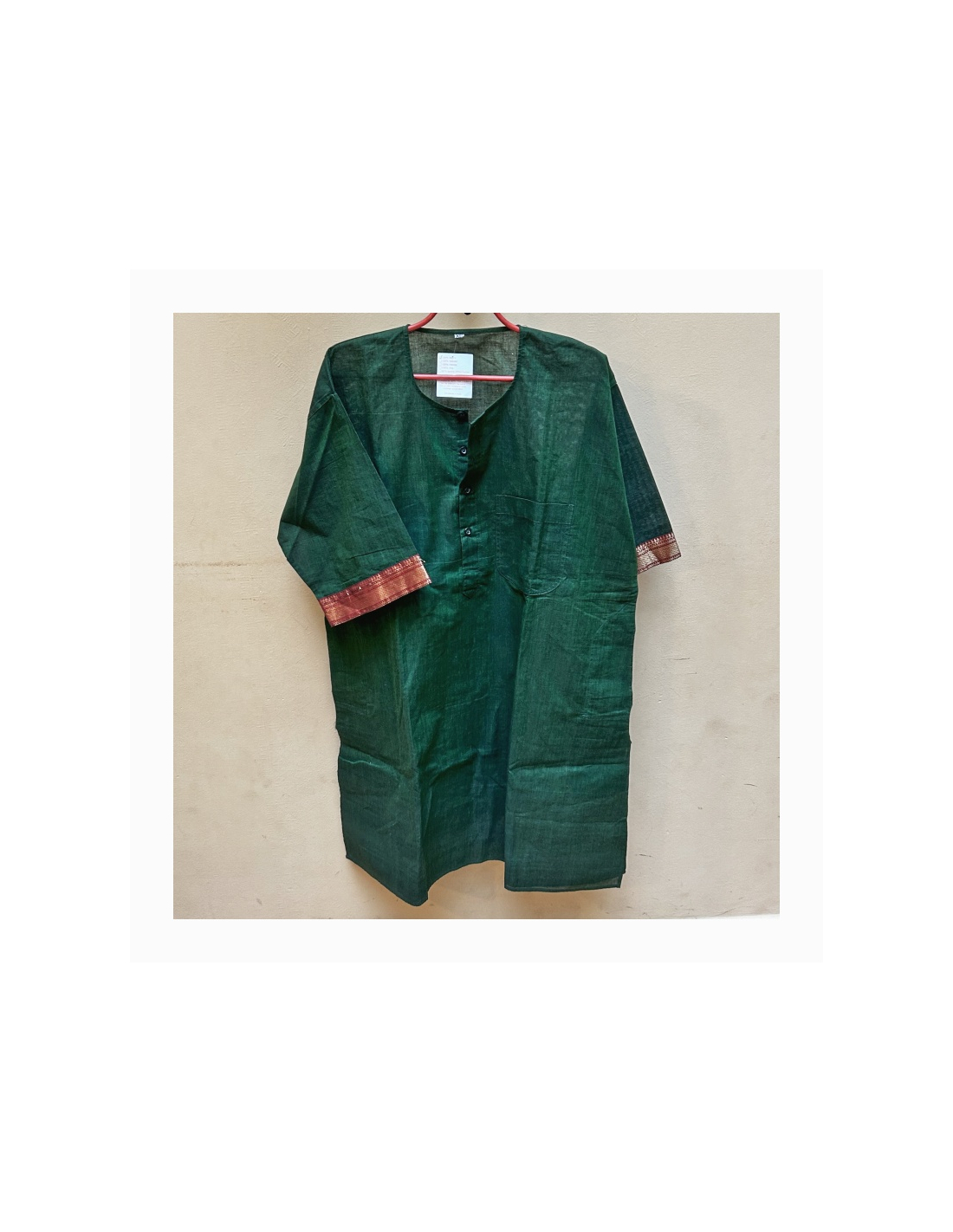 Pánská kurta, košile s krátkým rukávem sytě zelené barvy a kontrastní bordově zlatou bordurou. Elegantní do jakékoliv příležitosti.