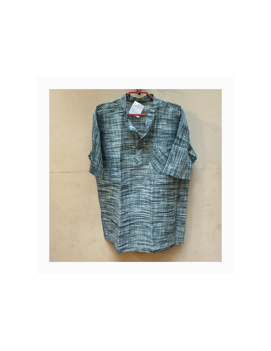 Pánská kurta, košile se stojáčkem a krátkým rukávem. Pevnější bavlna, vzor žíhaný světlými nitěmi.
