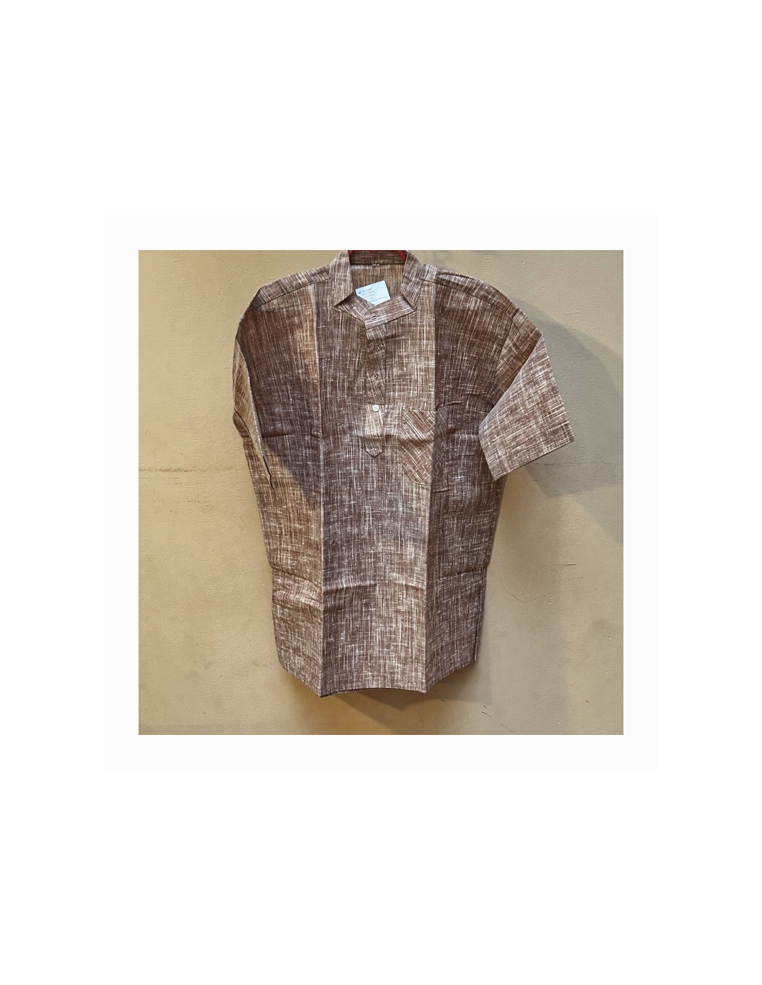 Pánská kurta, košile se stojáčkem a krátkým rukávem. Pevnější bavlna, vzor žíhaný světlými nitěmi.