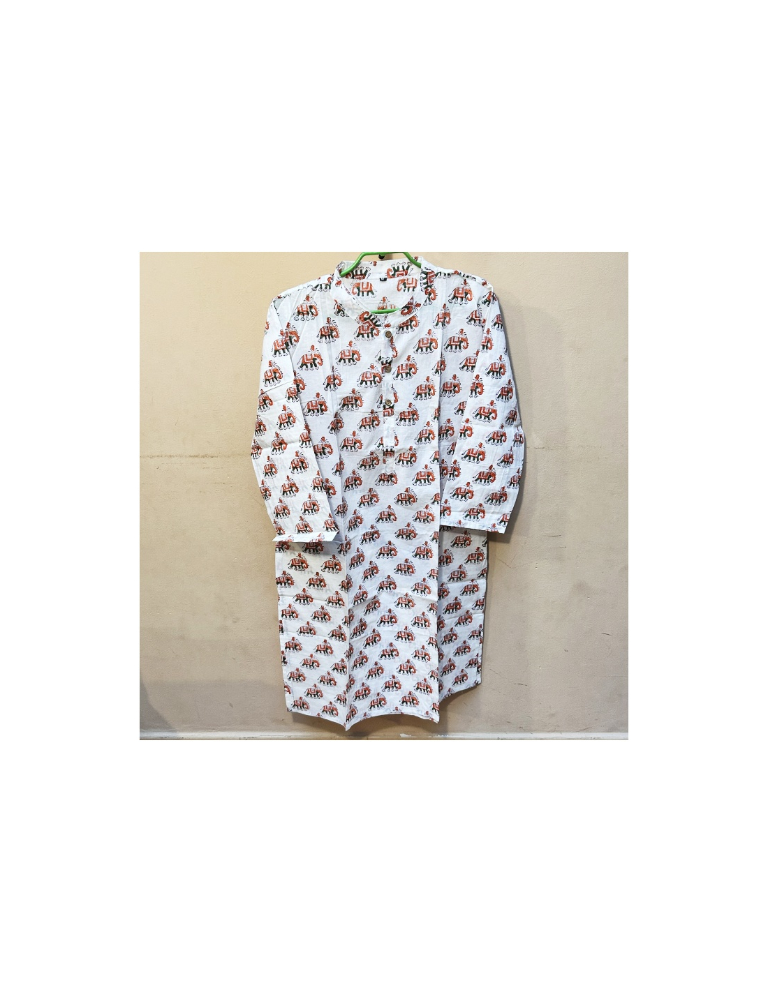 Lehká pánská kurta, košile se stojáčkem a dlouhým rukávem, léga se 4 knoflíčky. Kontrastní lemování na rukávech a spodním lemu košile.