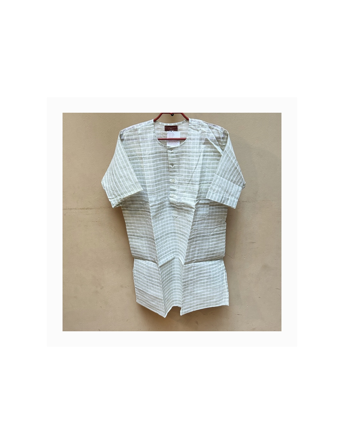 Letní pánská kurta s krátkými rukávy z tenké bavlny se vzorem jemné kostky. Náprsní kapsa a dvě boční všité kapsy.