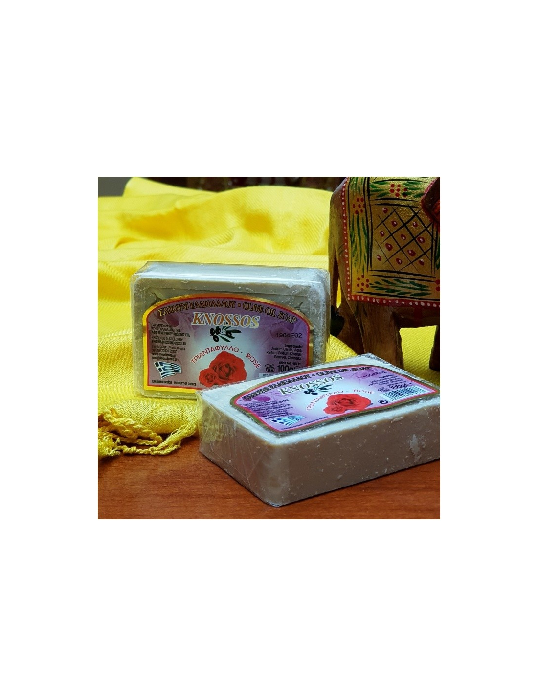 Tradiční řecké tuhé čistě olivové mýdlo s růží.