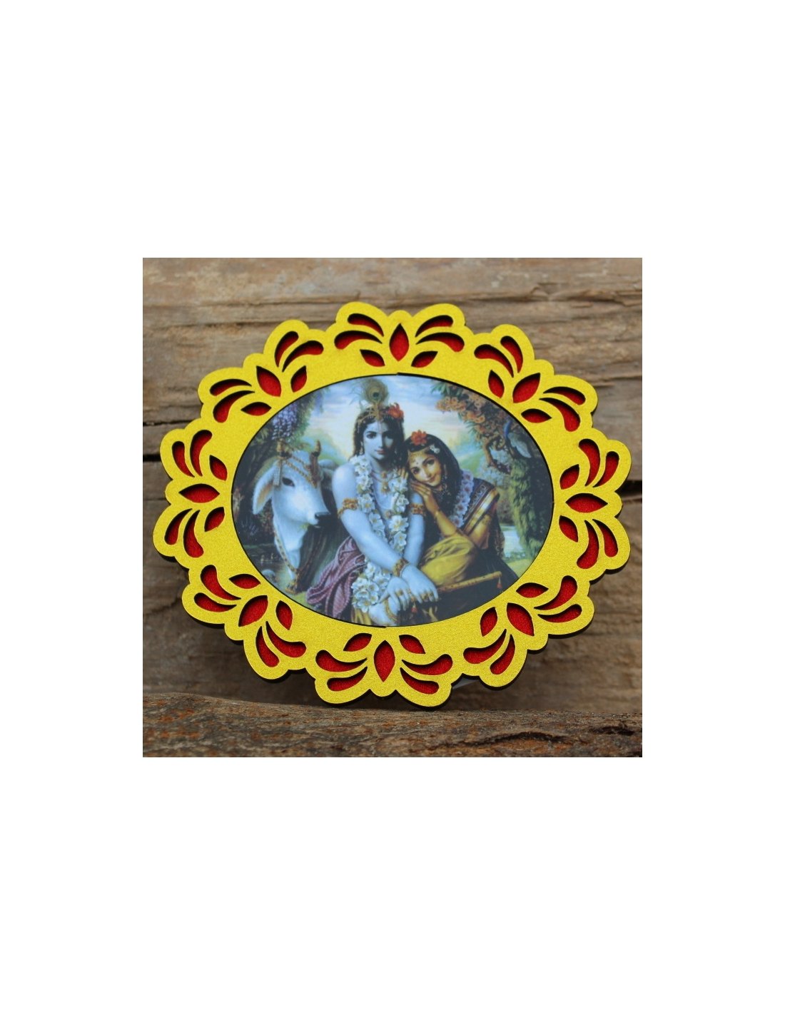 Dřevěná nálepka Krišna a Rádha s kravičkou
