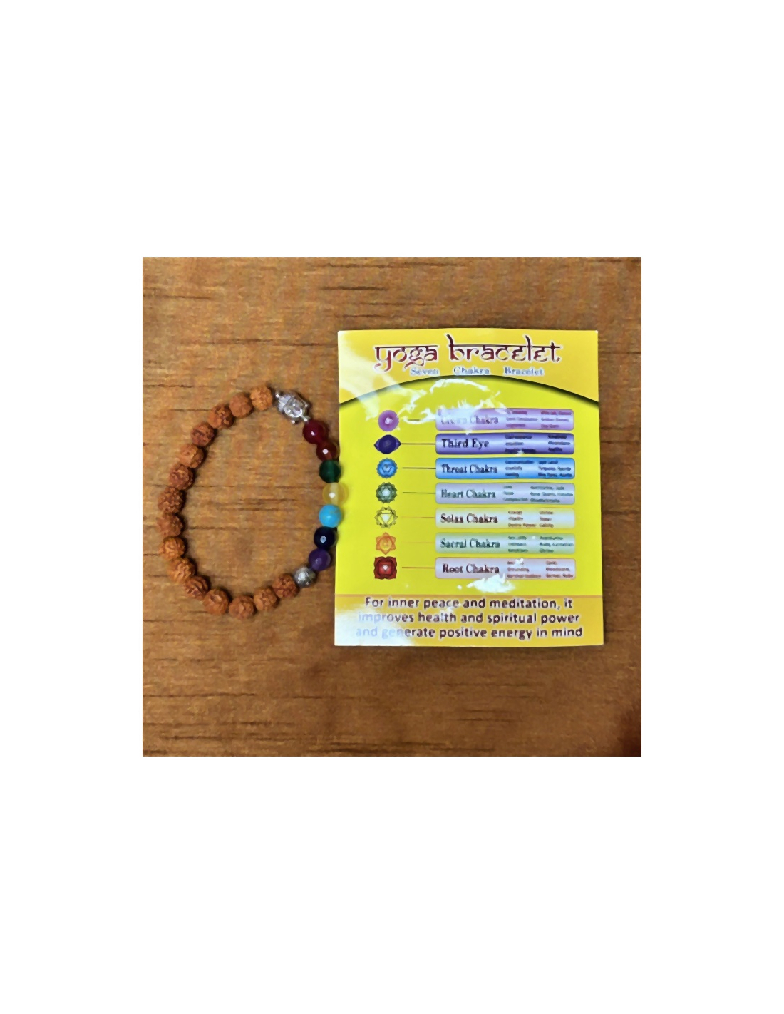 Rudrakša náramek s čakrovými kameny z polodrahokamů.