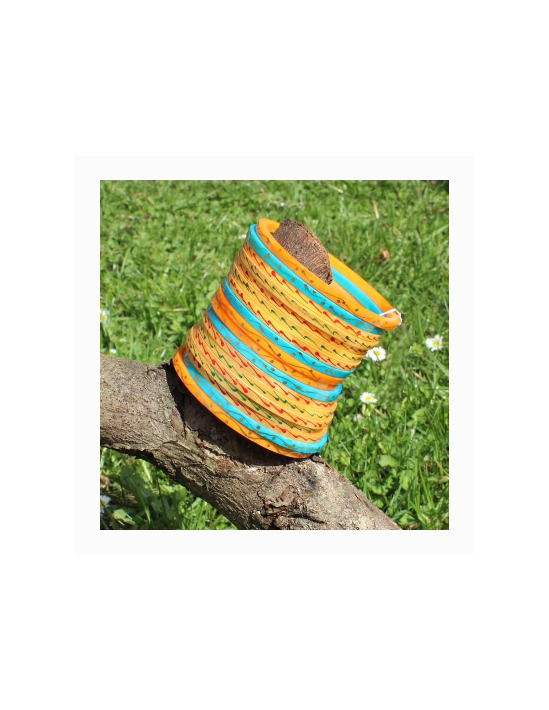 Sada 18 malovaných náramků s velikostí v každé sadě se změnšující k prostředku sady o cca 1 cm.