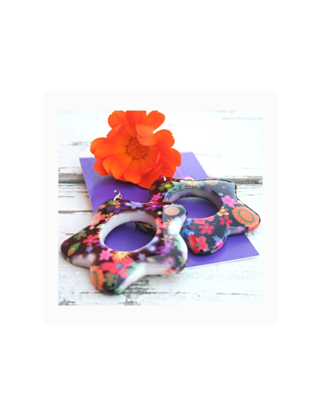 Náušnice ve tvaru hvězdy s květinovým vzorem.