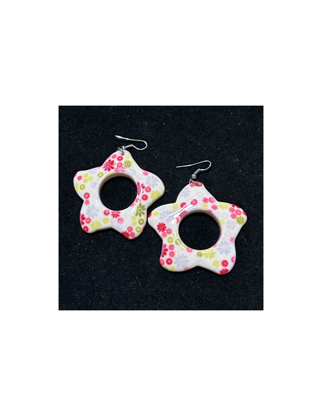 Náušnice ve tvaru hvězdy s květinovým vzorem.