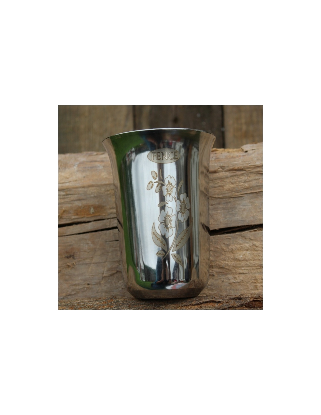 Nerezový pohár s motivem květin.