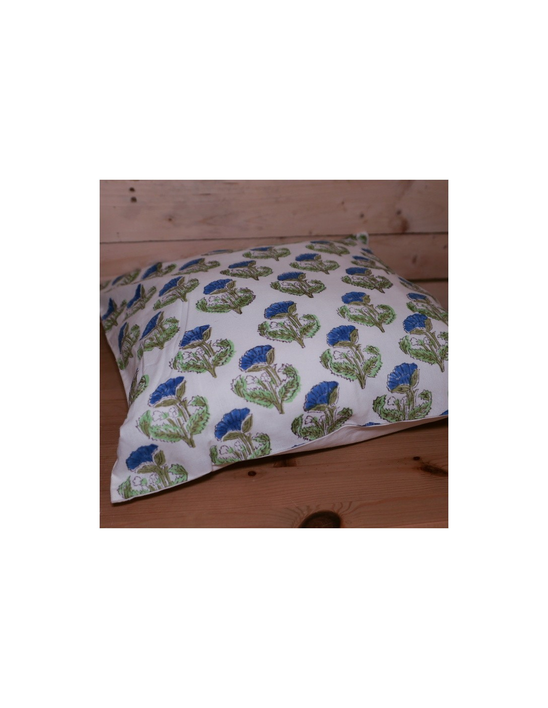 Bavlněný povlak na polštář ručně tištěný. Vzadu zip.