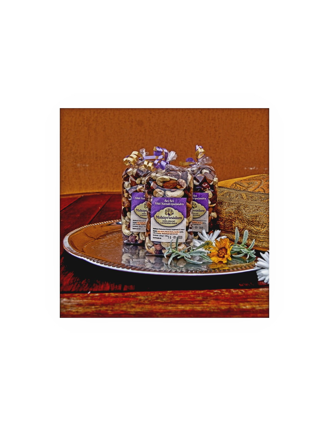 Skladem Prasádam a maháprasádam Maháprasádam - Čidva 200 g 992 190,00 Kč Pikantní směs mandlí, arašídů, rozinek a smaženého cizrnového těsta (bezlepkové). Přidat do košíku