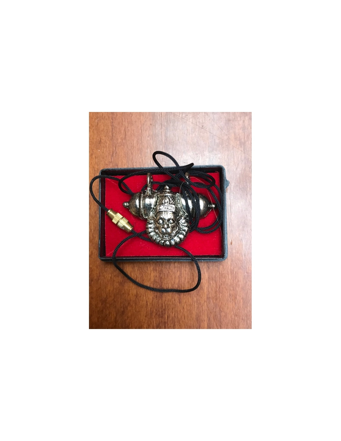 Kovový přívěšek kavača s Nrsimhadévou má silný ochranný vliv.