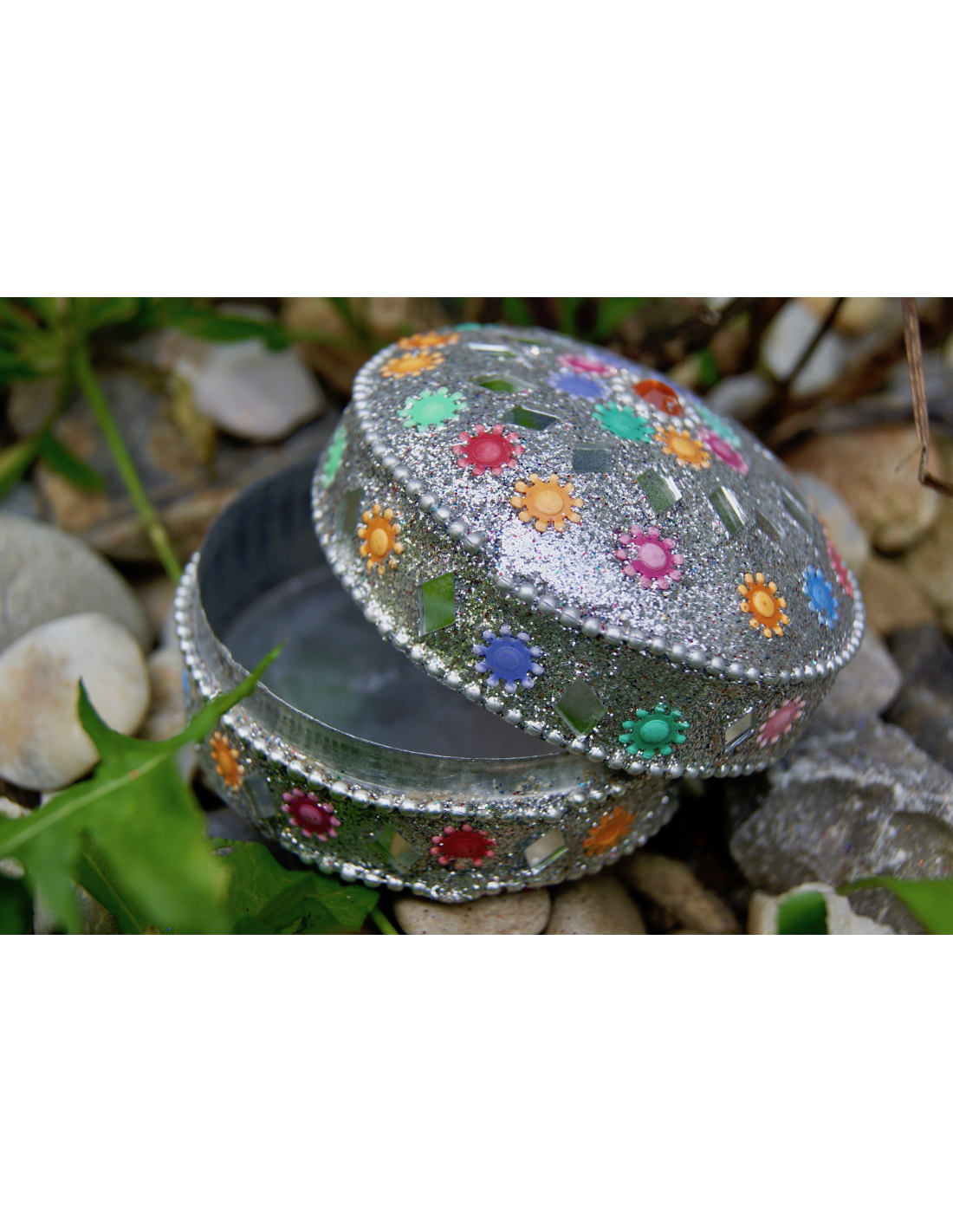 Barevná krabička ze sklíček a třpytek jistě potěší každou dívku.