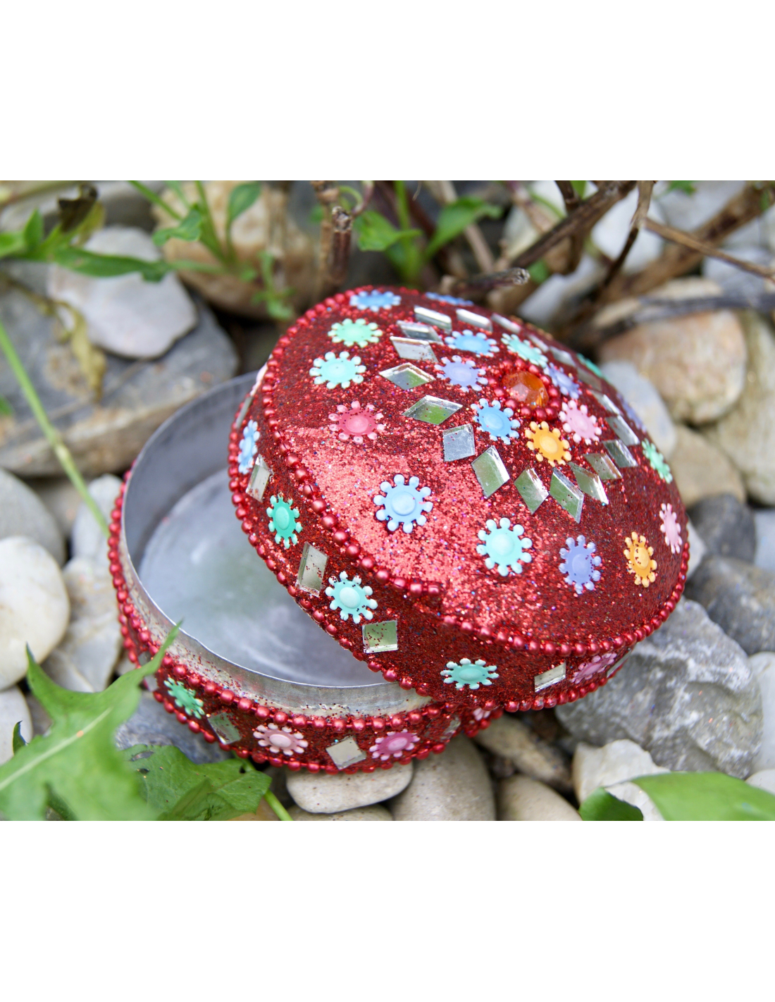 Barevná krabička ze sklíček a třpytek jistě potěší každou dívku.