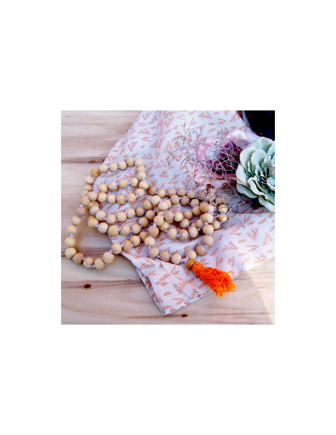 Růženec Japa Mala ze 108 korálků dřeva stromu neem.