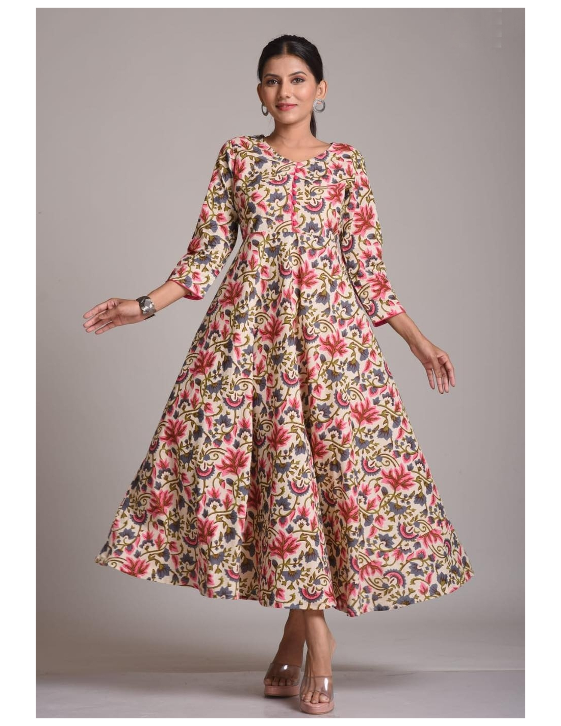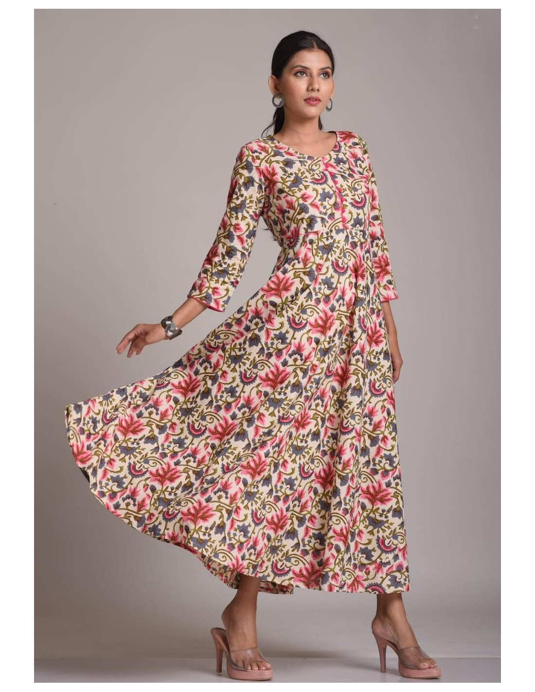 Elegantní šaty tištěné technikou handblock, 100% bavlna. Střih ladí postavě a zakryje nedostatky.