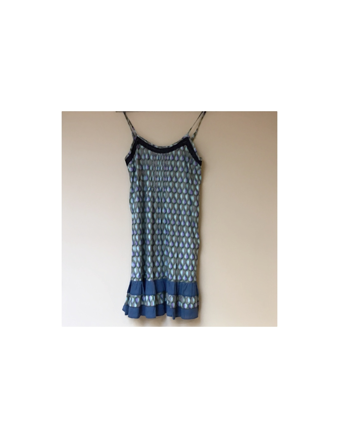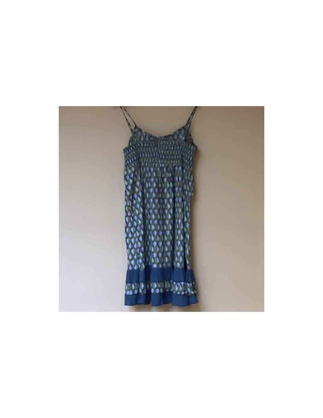 Krátké lehké letní šaty ze 100 % bavlny, na zádech stažené do gumiček se přizpůsobí postavě.