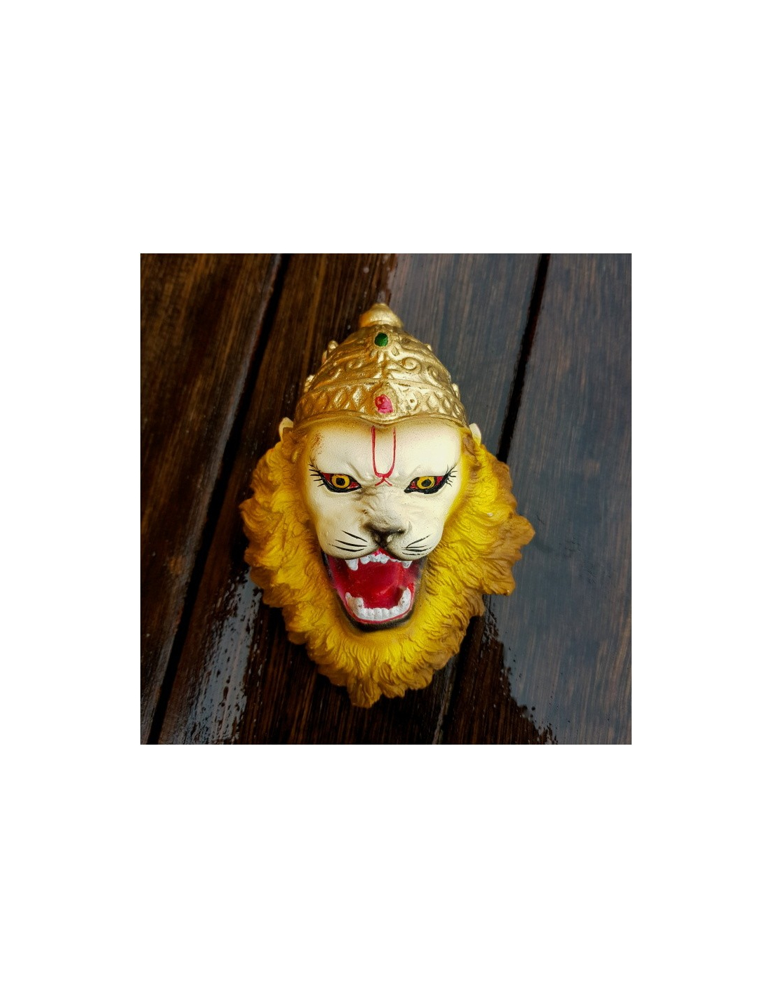 Soška Nrsimha k zavěšení.Pán Nrsimhadév je ztělesněním dobrosrdečnosti. Ochraňuje své oddané.