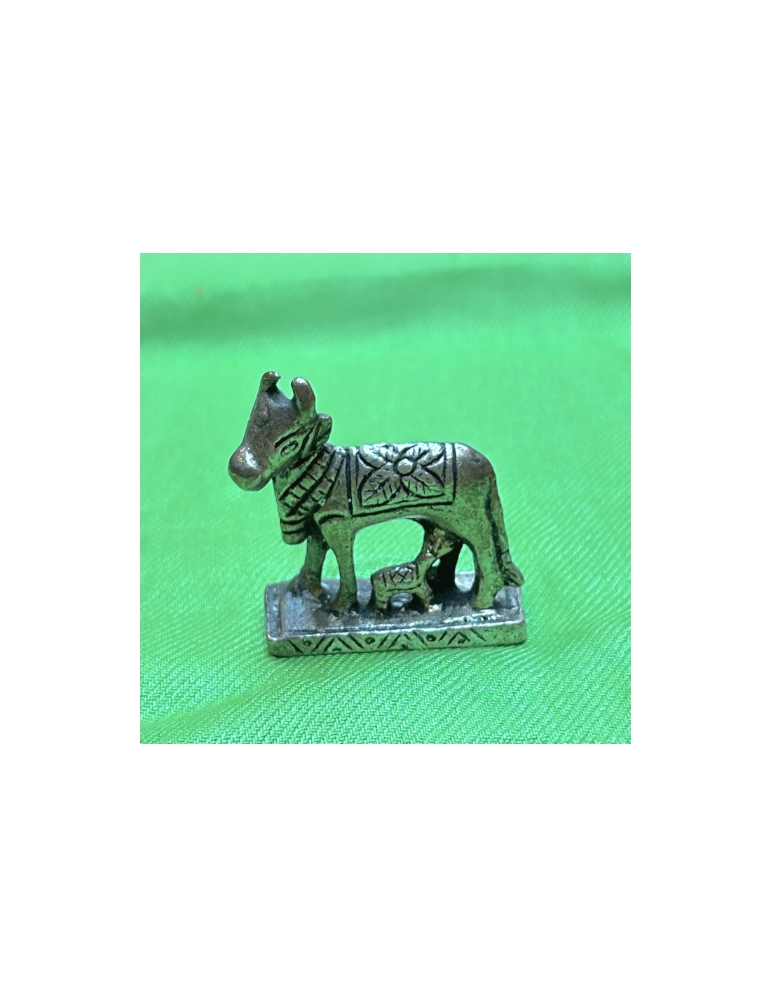 Kravička s telátkem, kovový odlitek šedé barvy.