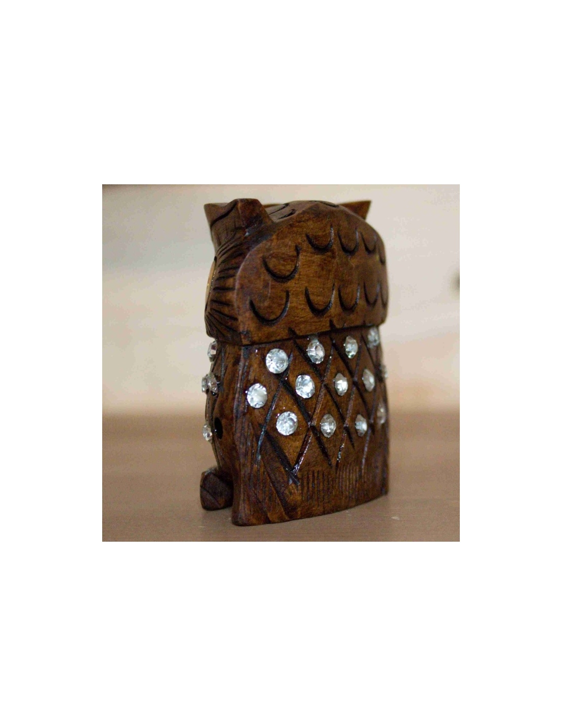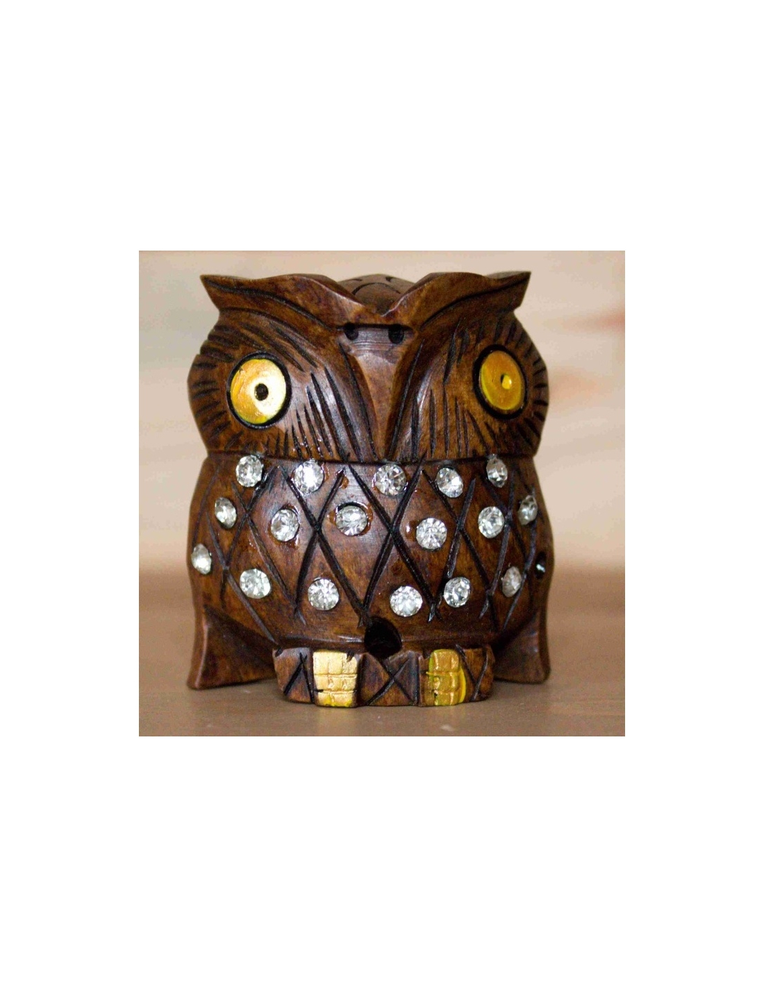 Dřevěná sovička s kamínky, krásná dekorace pro oživení police.